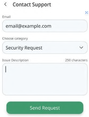 - Tap the Contact Support option on the Settings screen. The following screen appears: