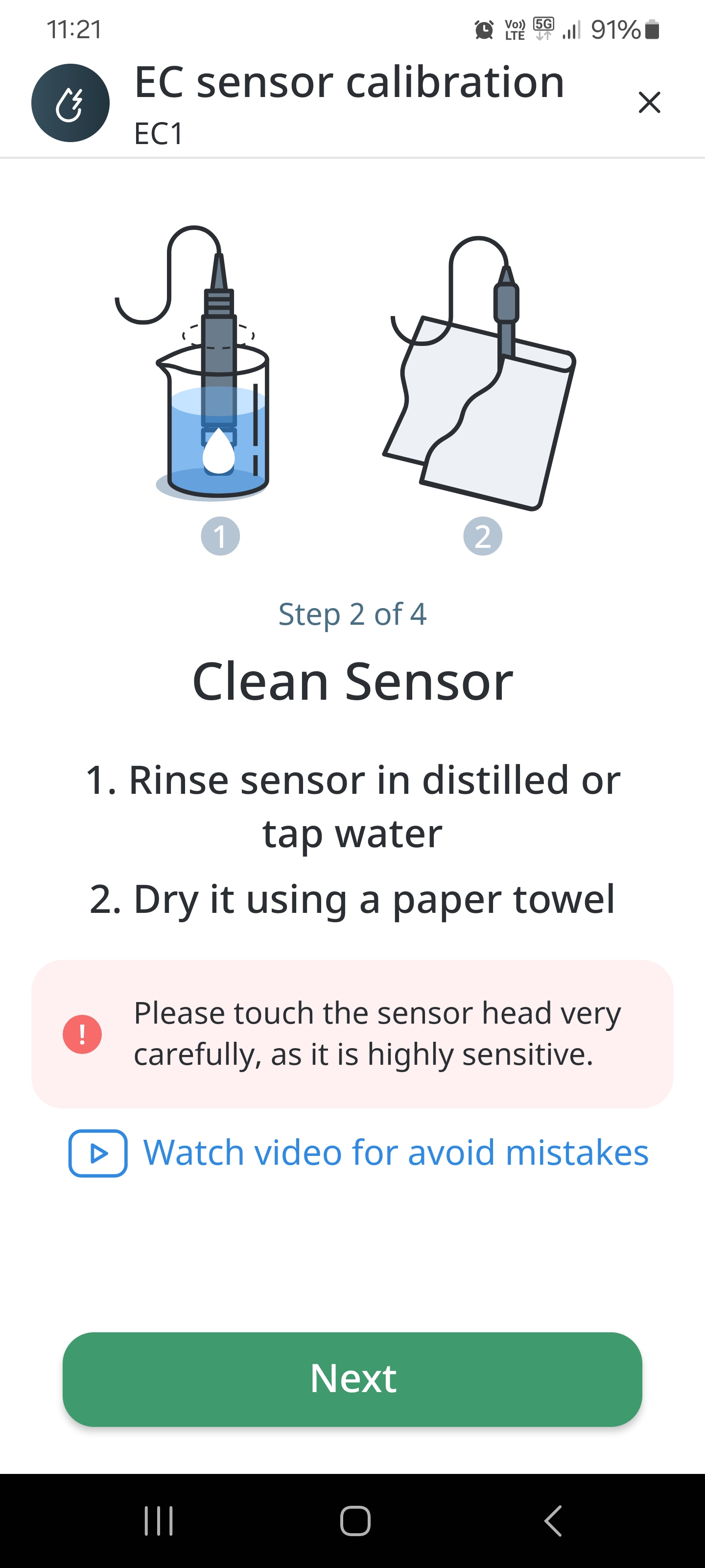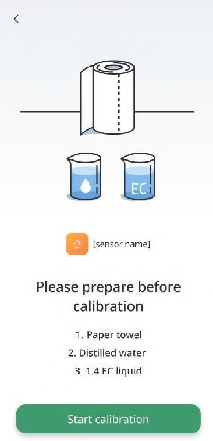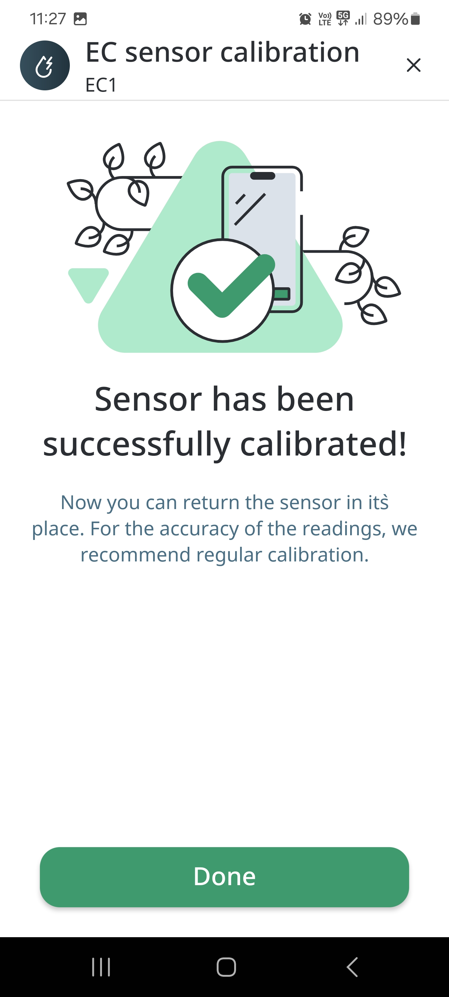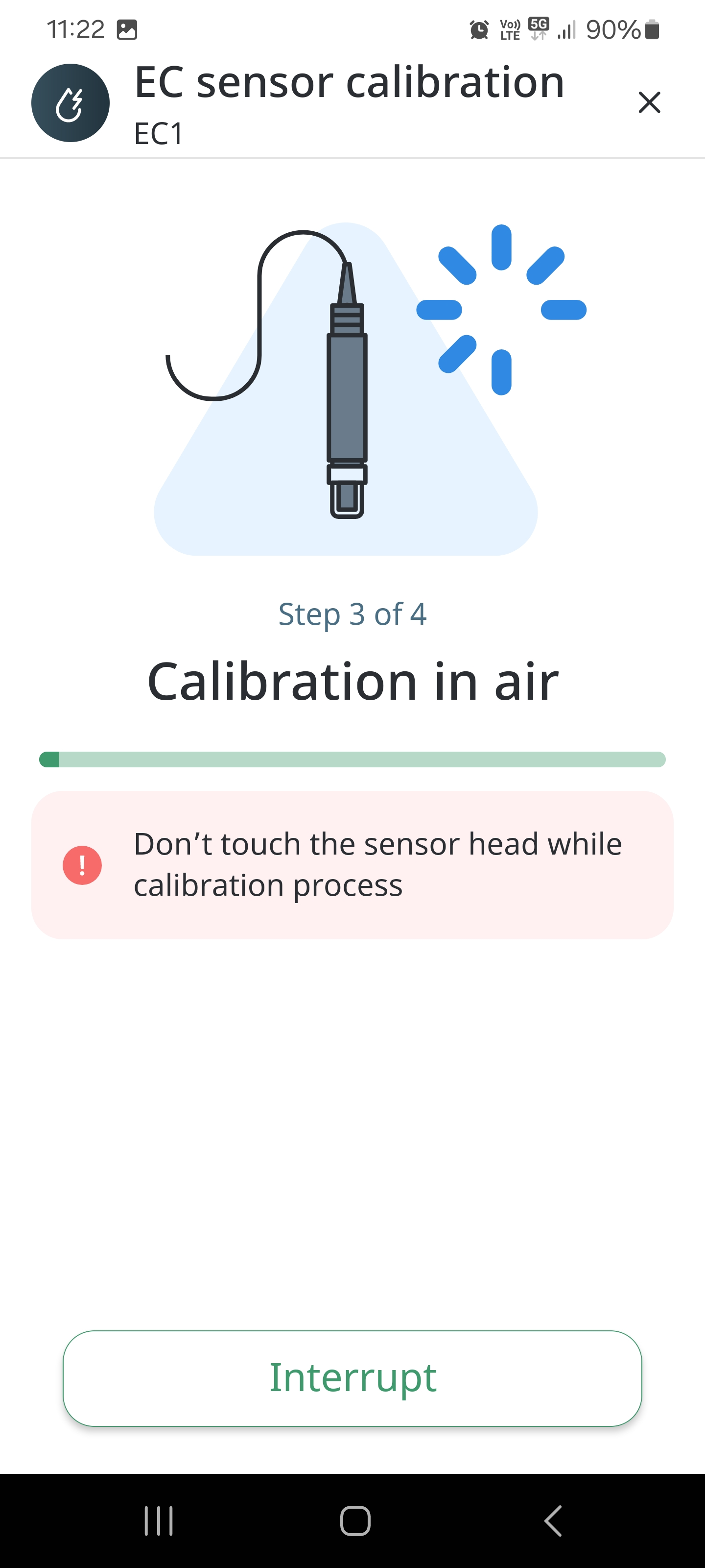 - Prepare 1.4 EC or 2.7 EC buffer and dip EC Sensor into it and tap the Calibrate EC button.