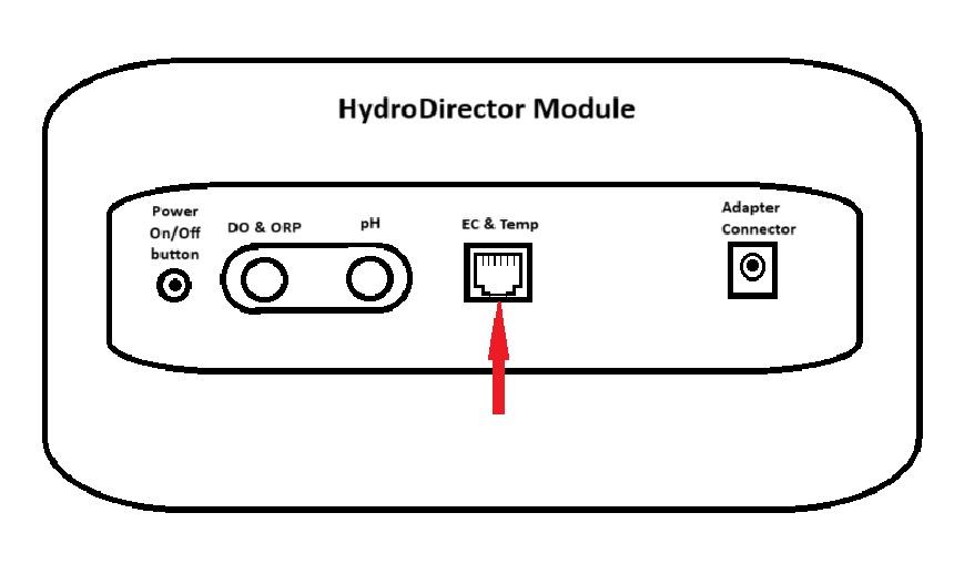 Insert the sensor adapter into the square slot under the label “EC & Temp”.