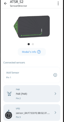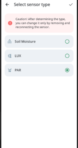 - Waiting a few seconds and getting notification that sensor PAR do not need calibration.