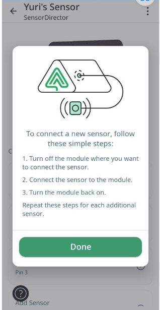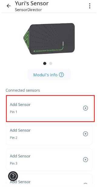 Tap the SensorDirector button and then tap Add Sensor. The following screen appears: