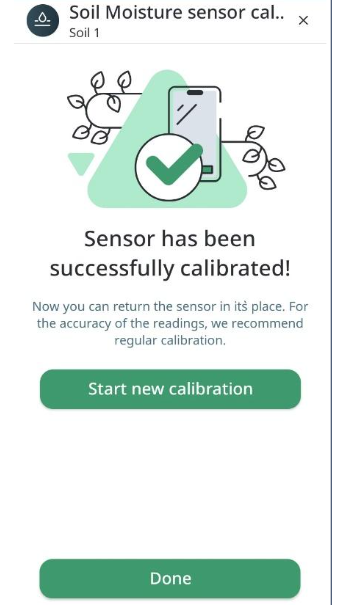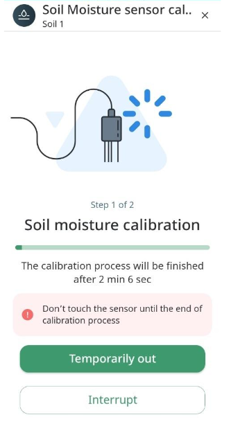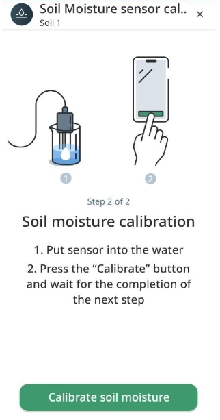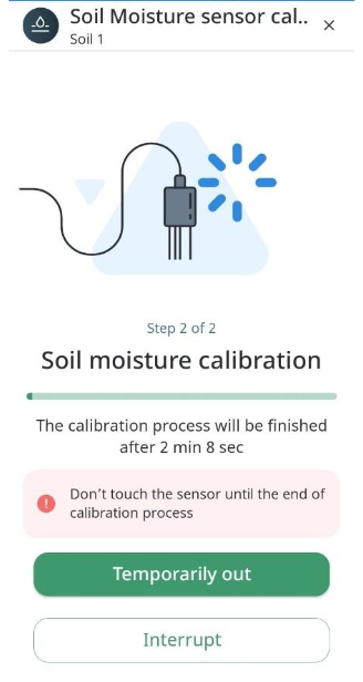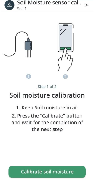 - Keep Soil Moisture in air and then tap the Calibrate button. The following screen appears: