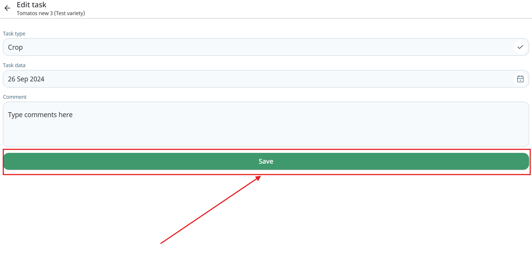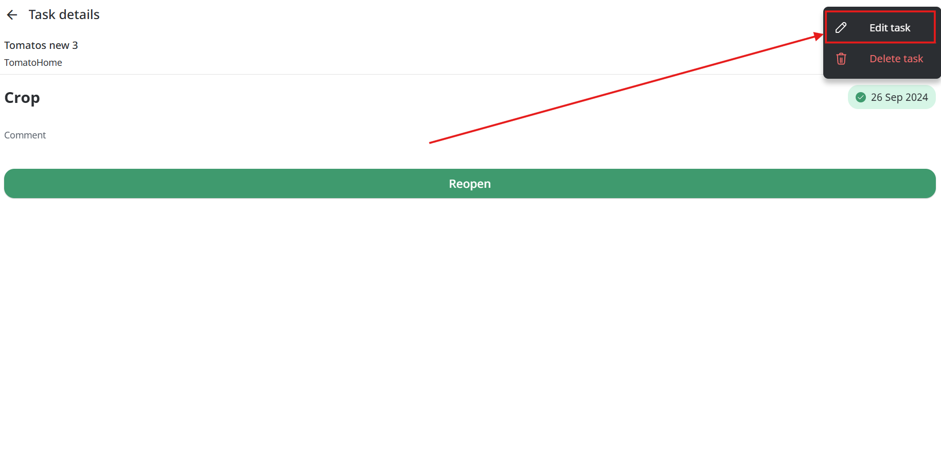 - To edit task user needs to tap on the “Agrinotes” icon between “Modules” and “Settings” icons on the bottom panel of the App.