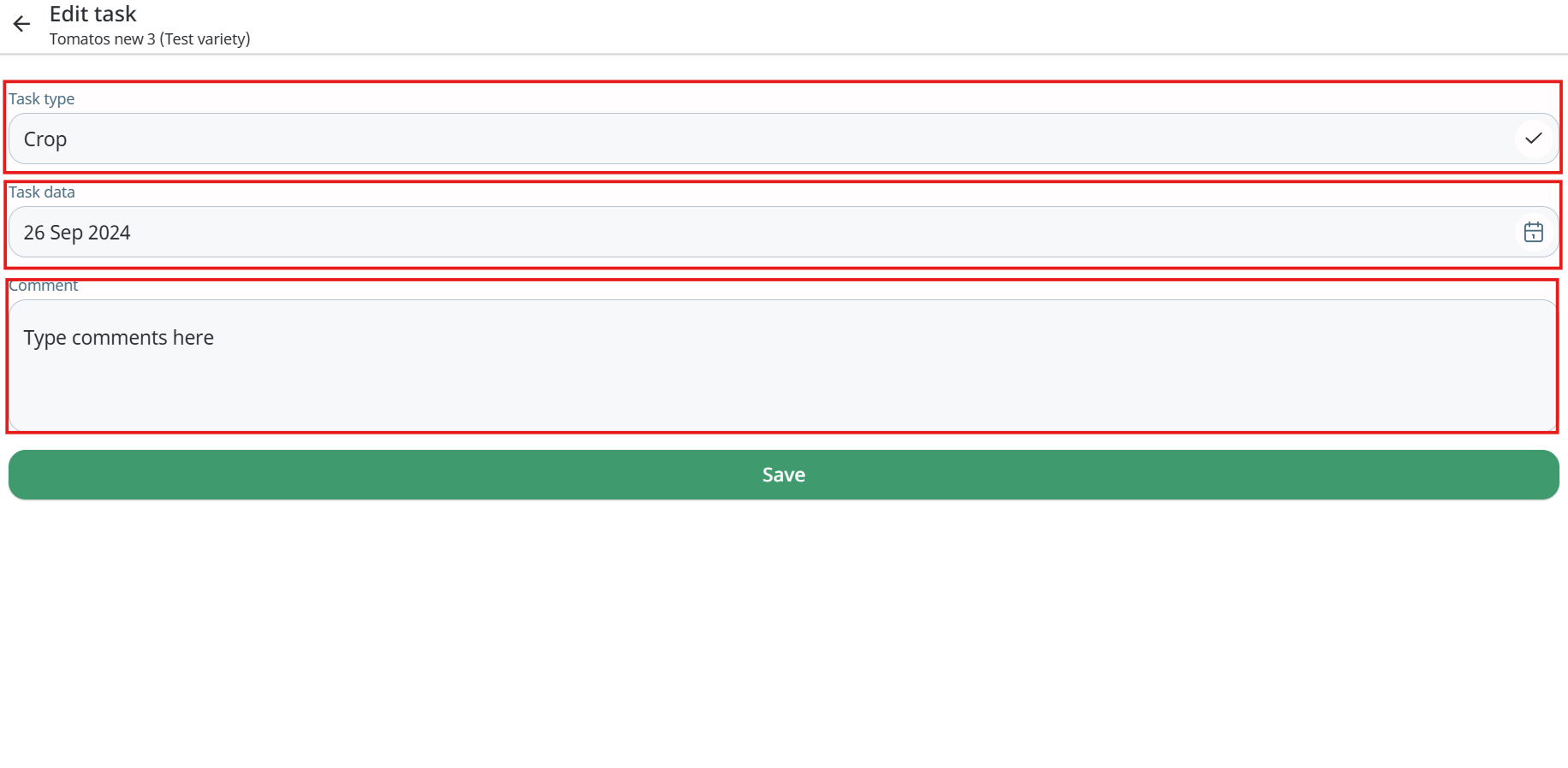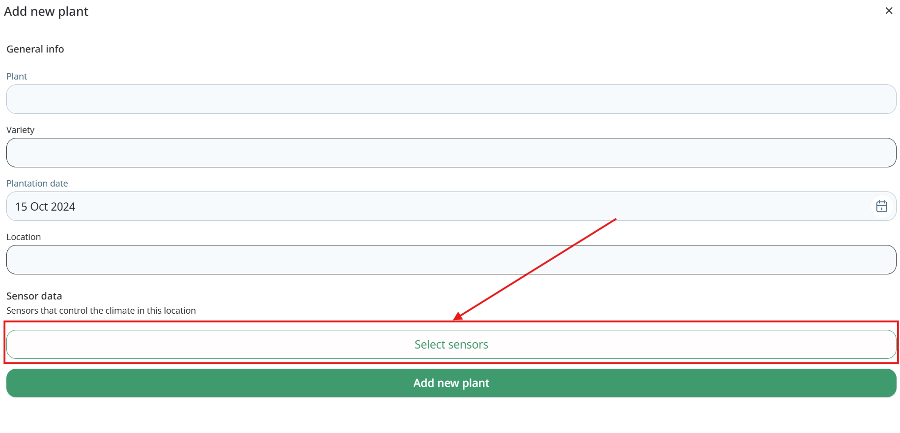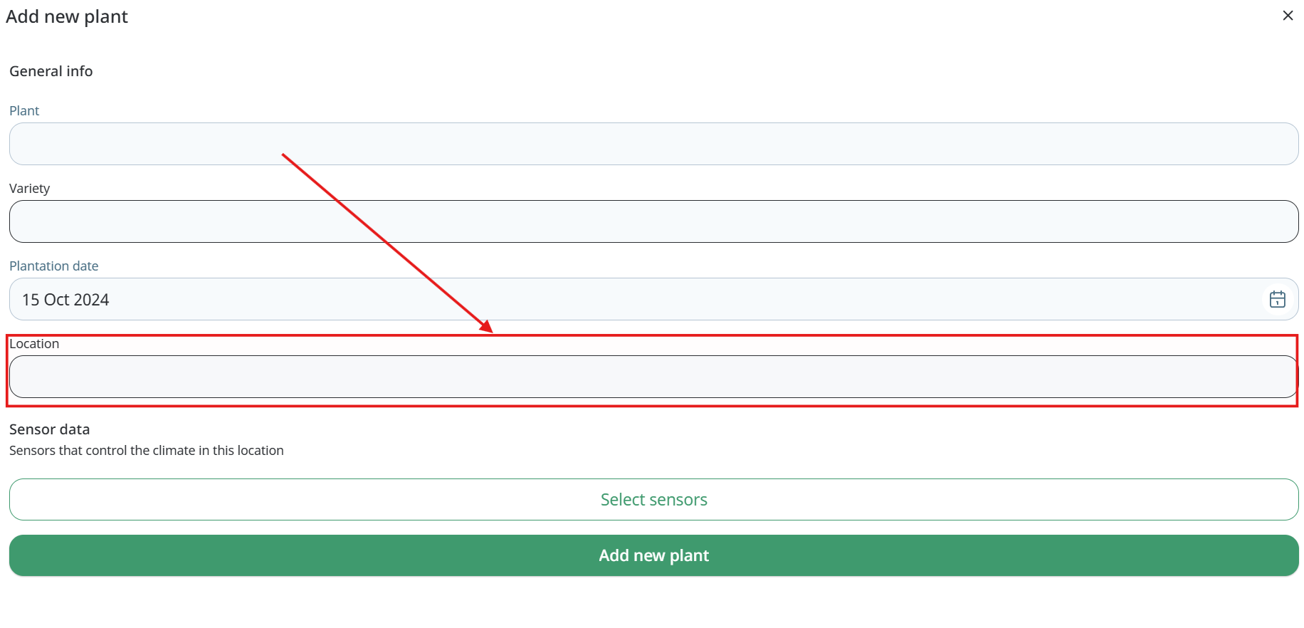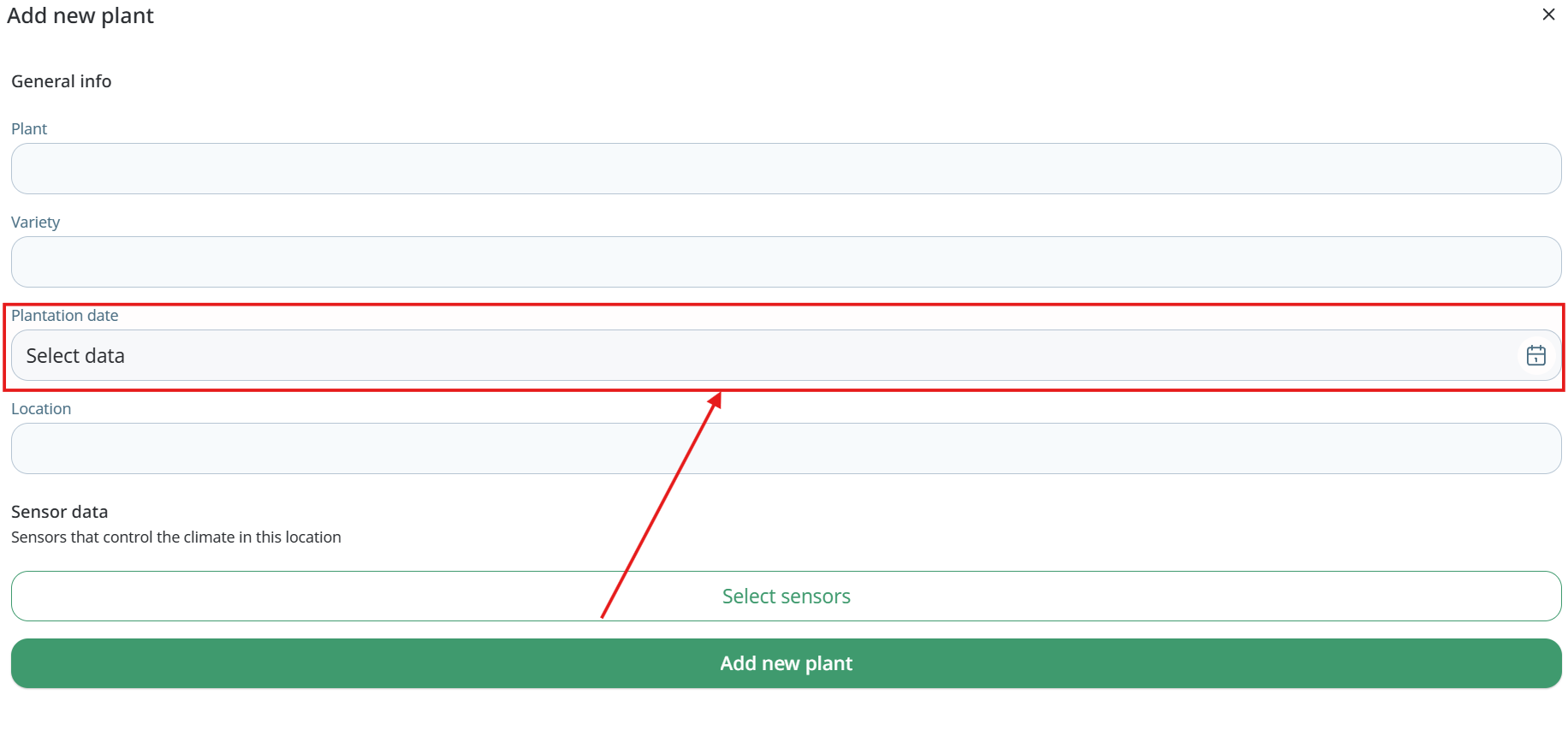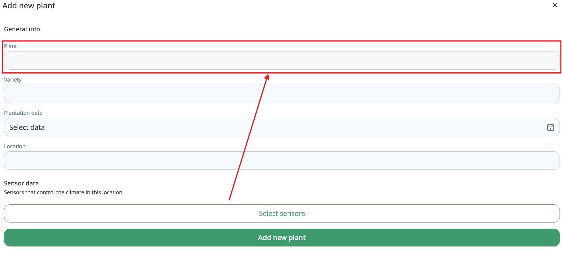 - On the opened screen users can change plant name, variety, plantation date, location and sensors.
