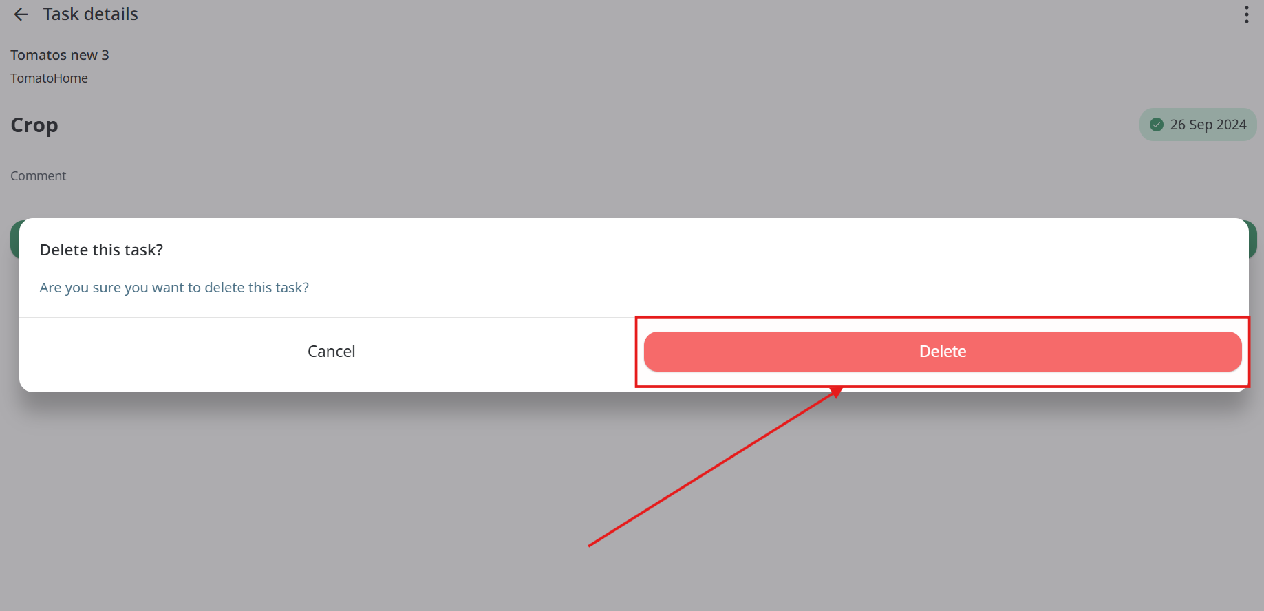 - To delete task user needs to tap on the “Agrinotes” icon between “Modules” and “Settings” icons on the bottom panel of the App.