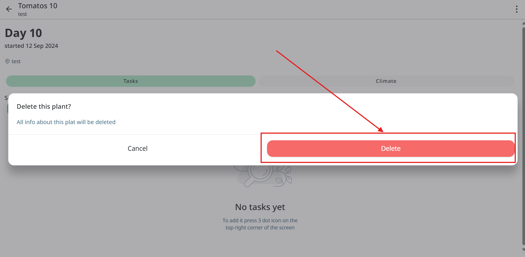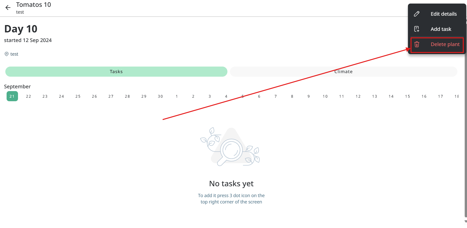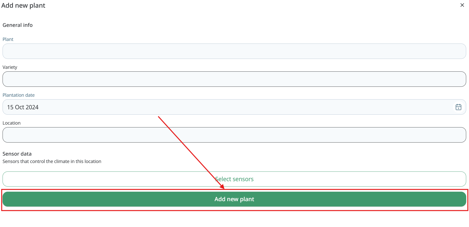 - In the opened window user will see “Plants” chapter, where user can see his plants.