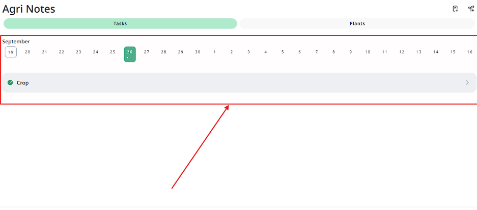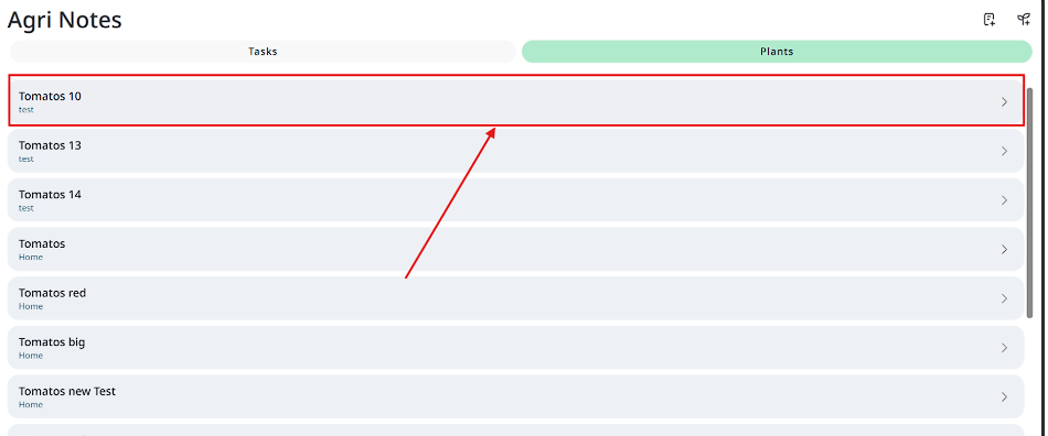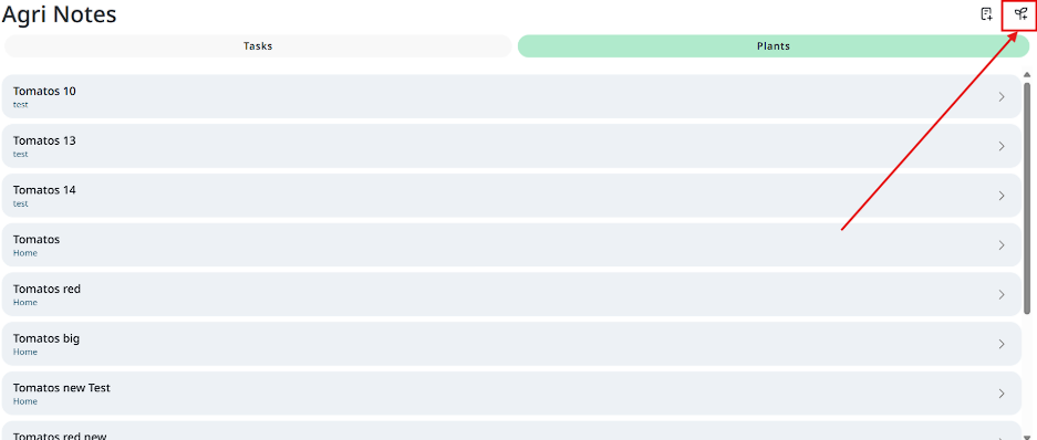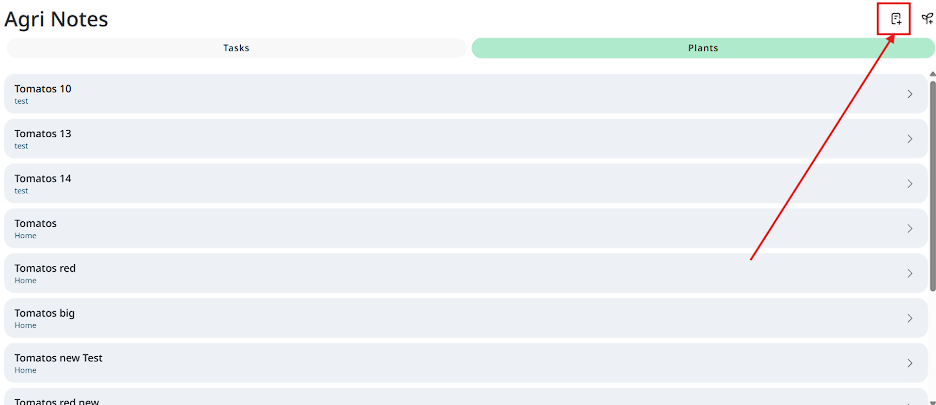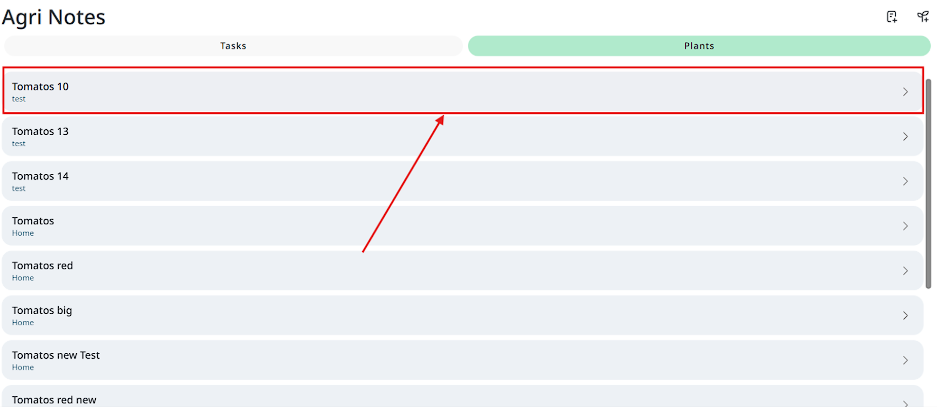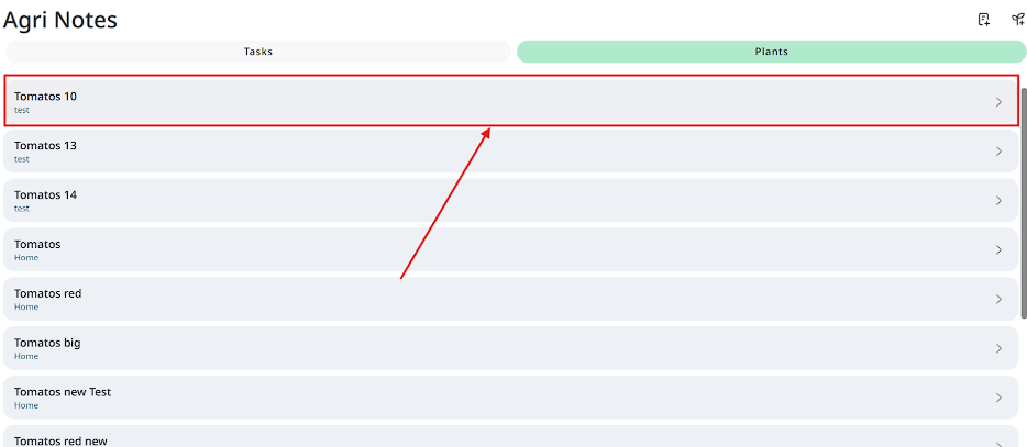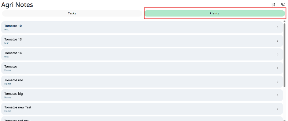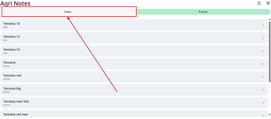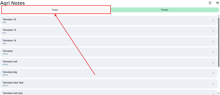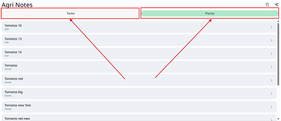 On the Agrinotes screen users can see next chapters: “Tasks” and “Plants”.