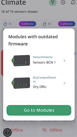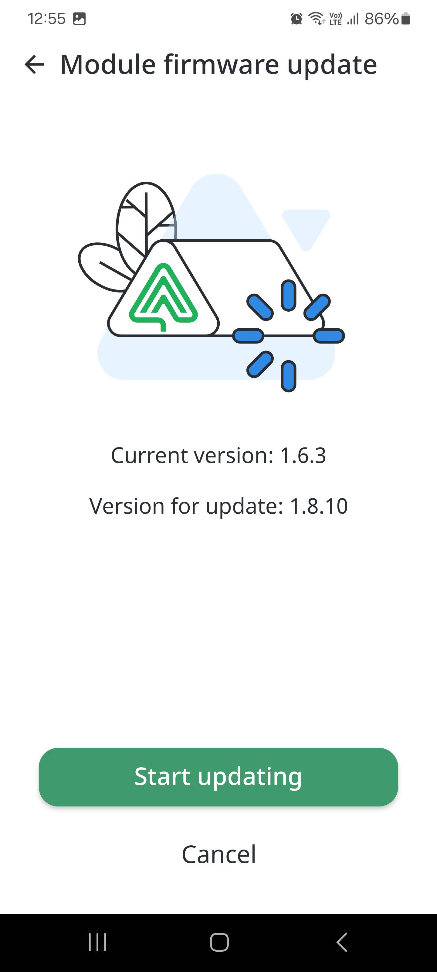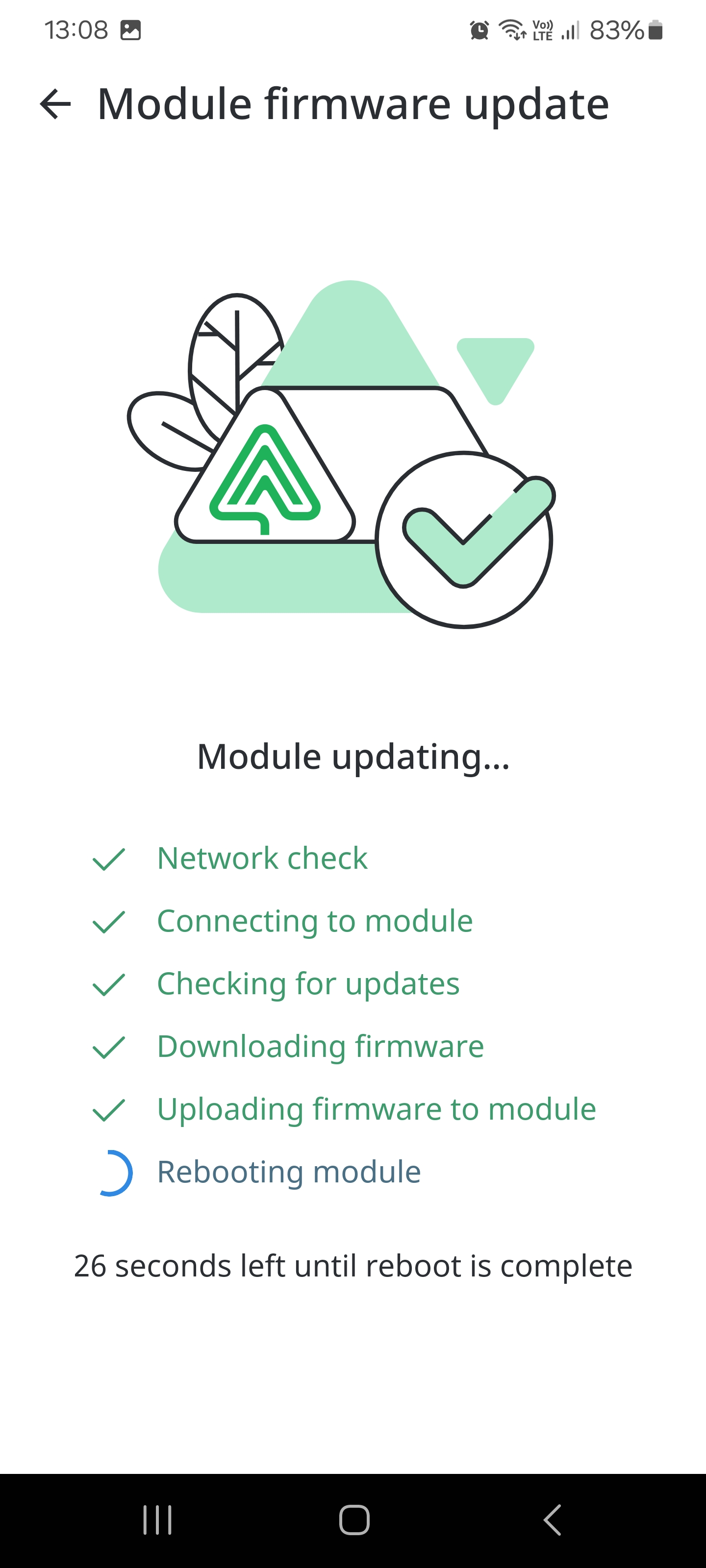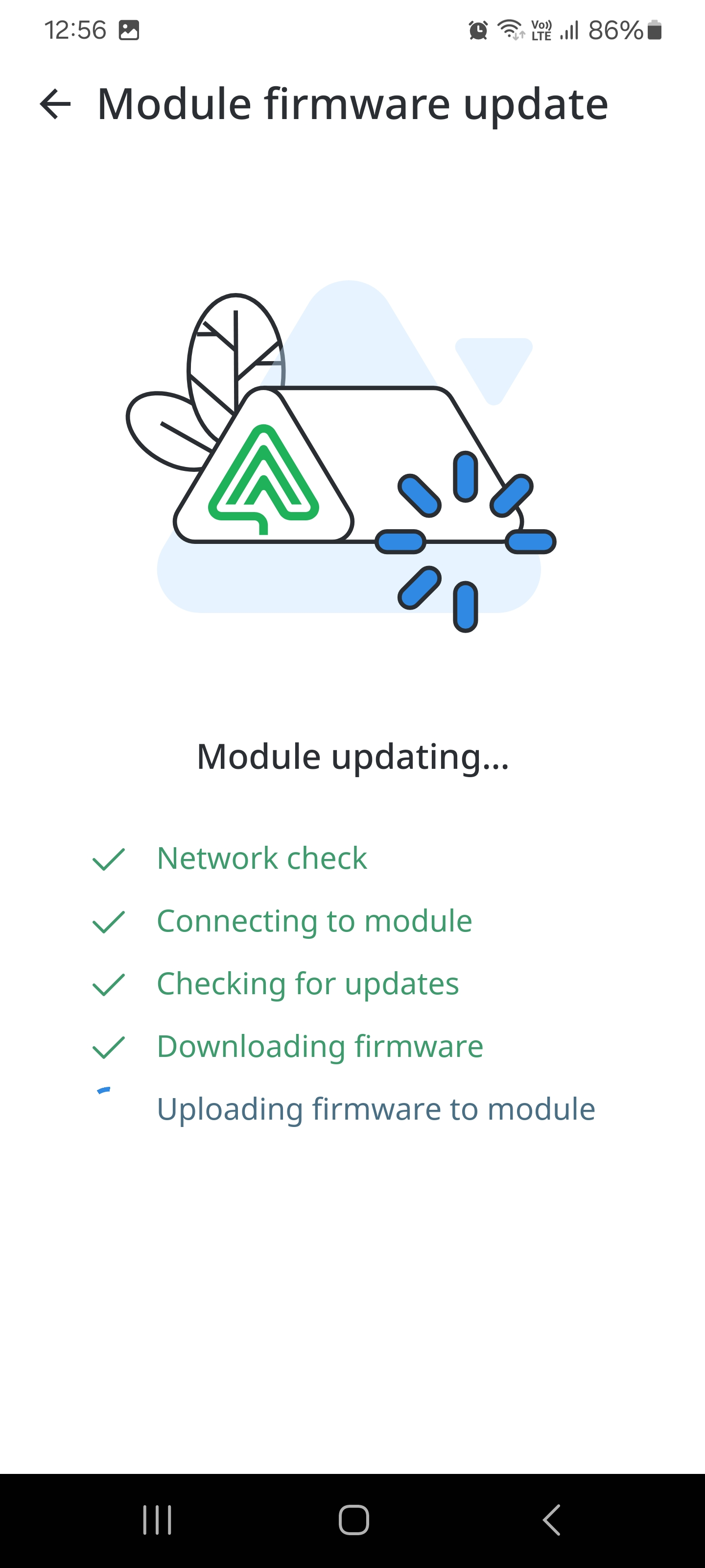 In previous software versions, updating the module required that both the module itself and the user’s mobile device be connected to the same local Wi-Fi network. This constraint was necessary to establish direct communication between the devices for the update process.