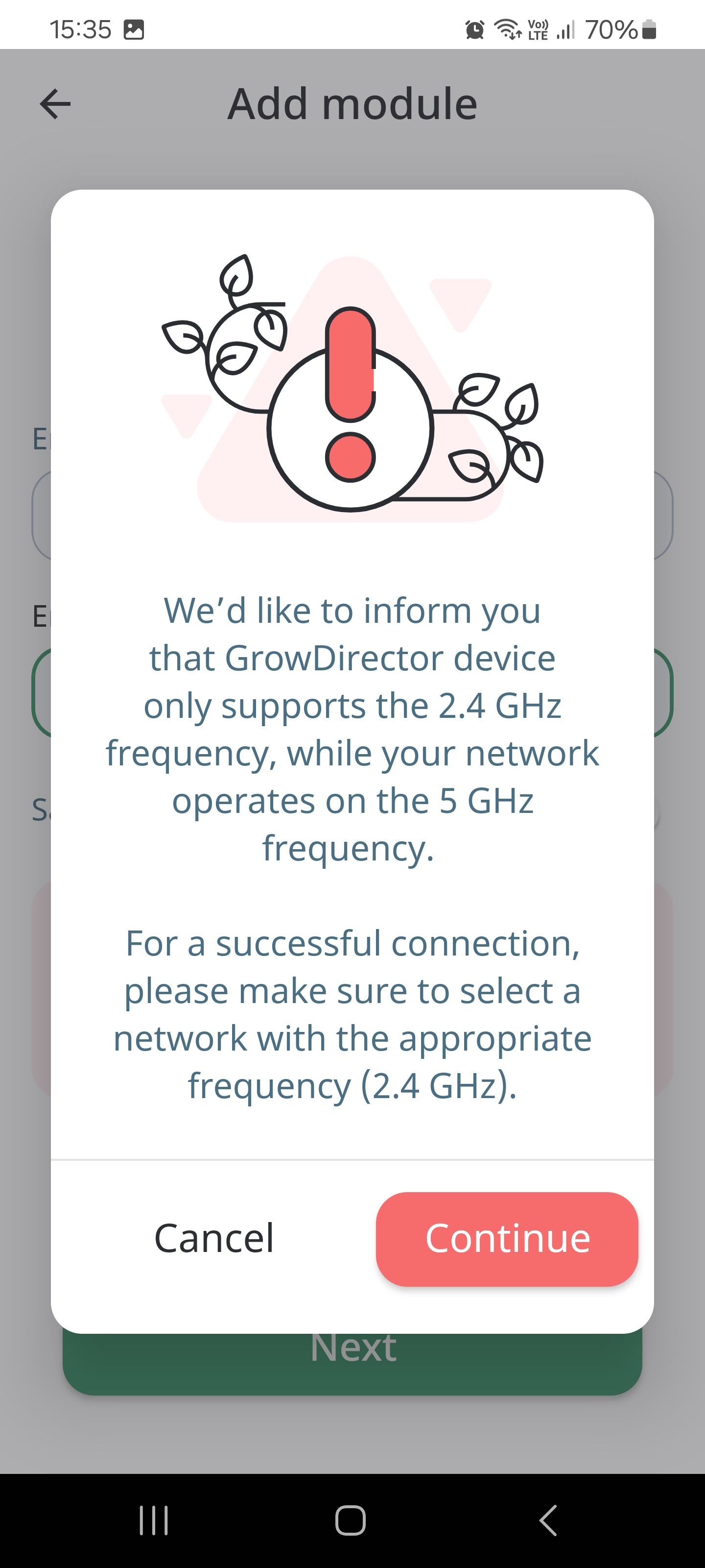 Note: Ensure your Wi-Fi is switched on. Make sure your router is compatible with the 2.4 GHz frequency, as Modules require this frequency for connection: