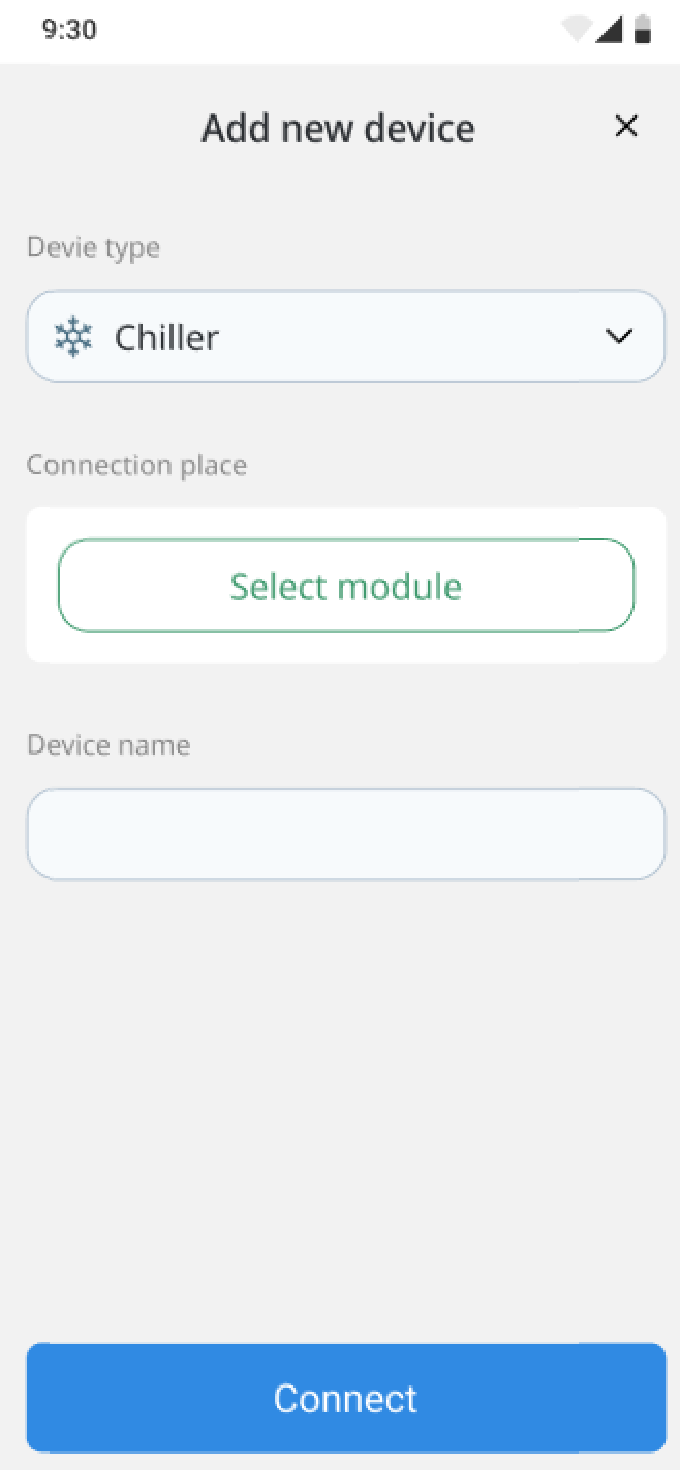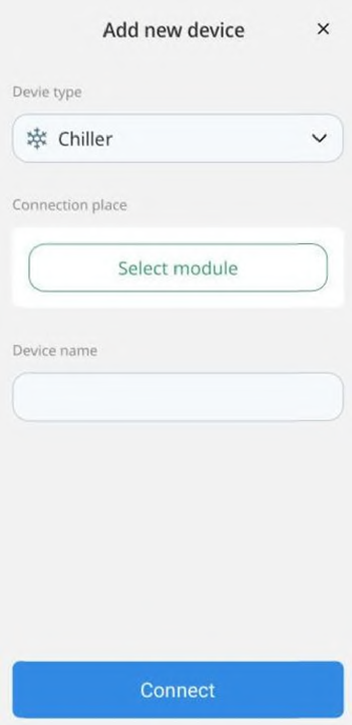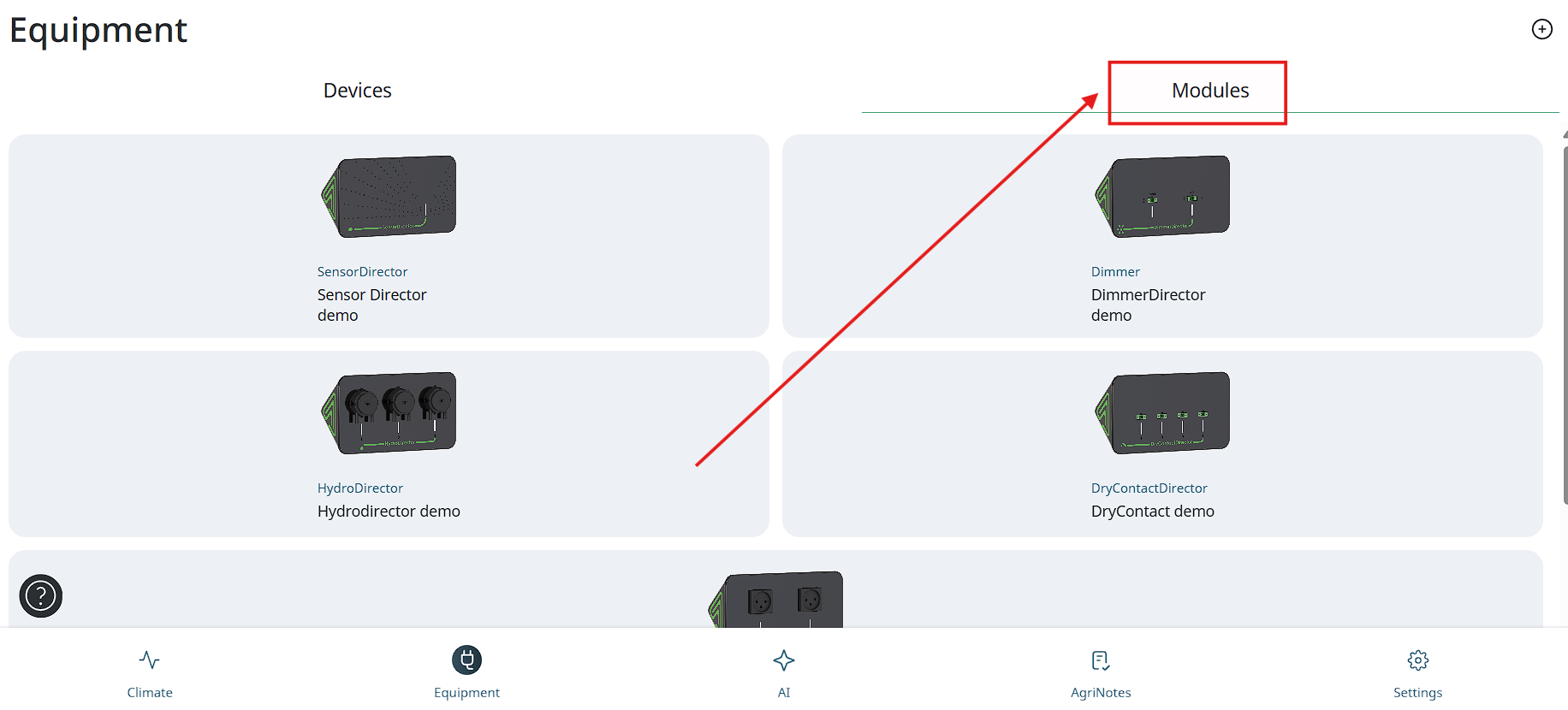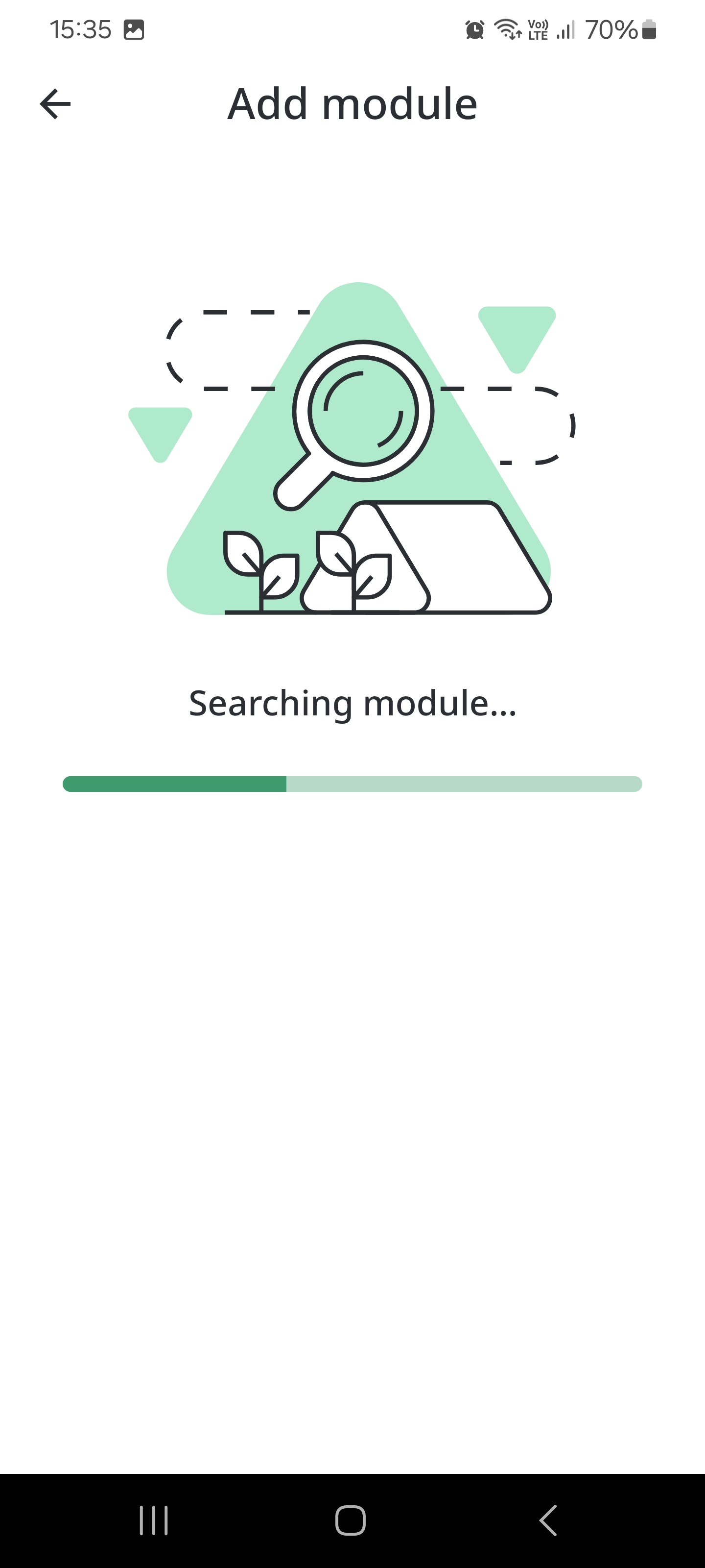 In the App, tap on the Equipment tab, and then on the “Connect module” button (icon) in the “Modules” section.