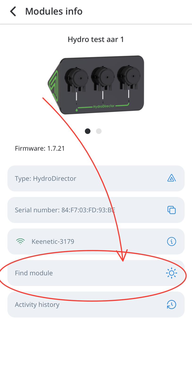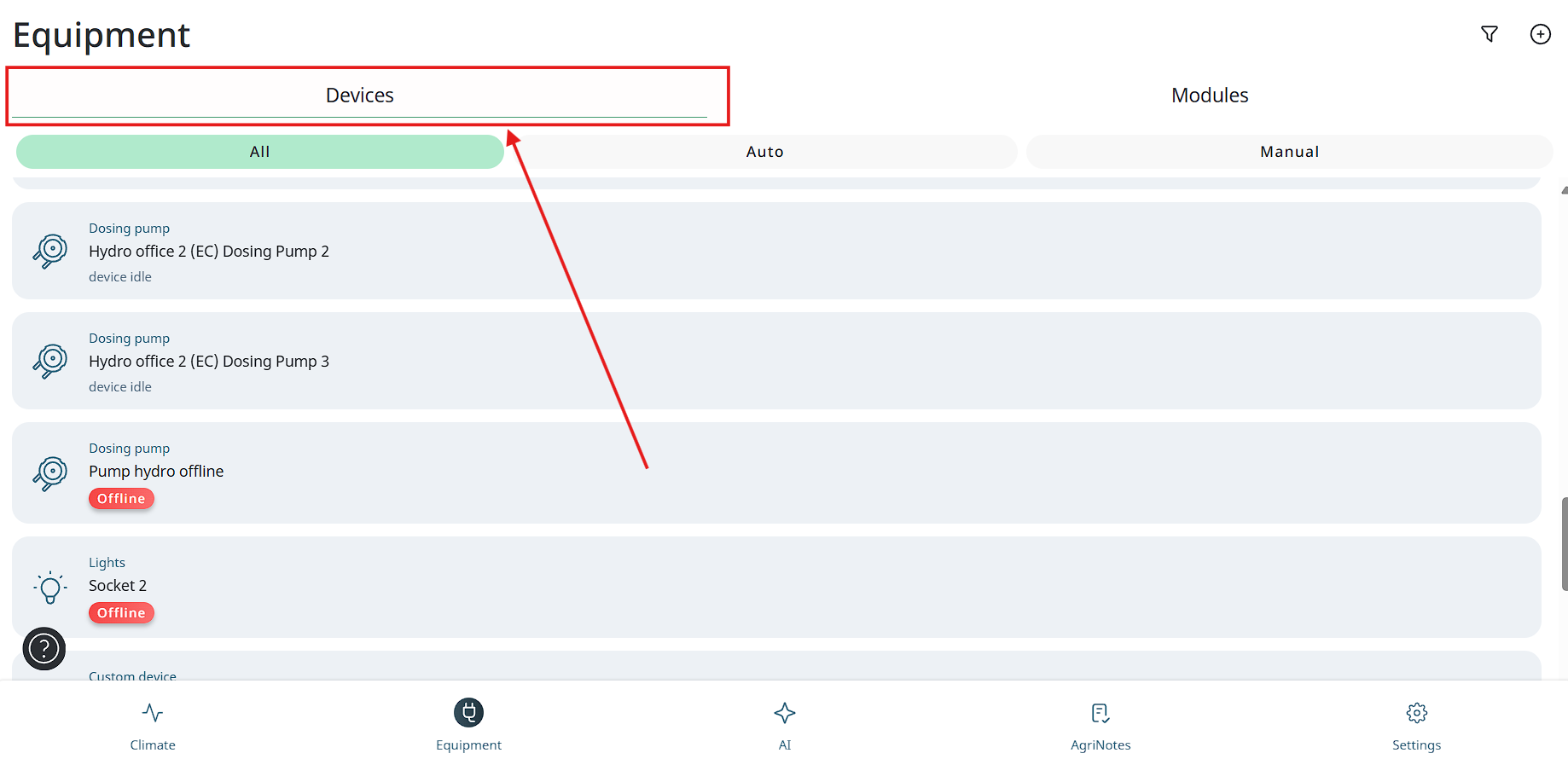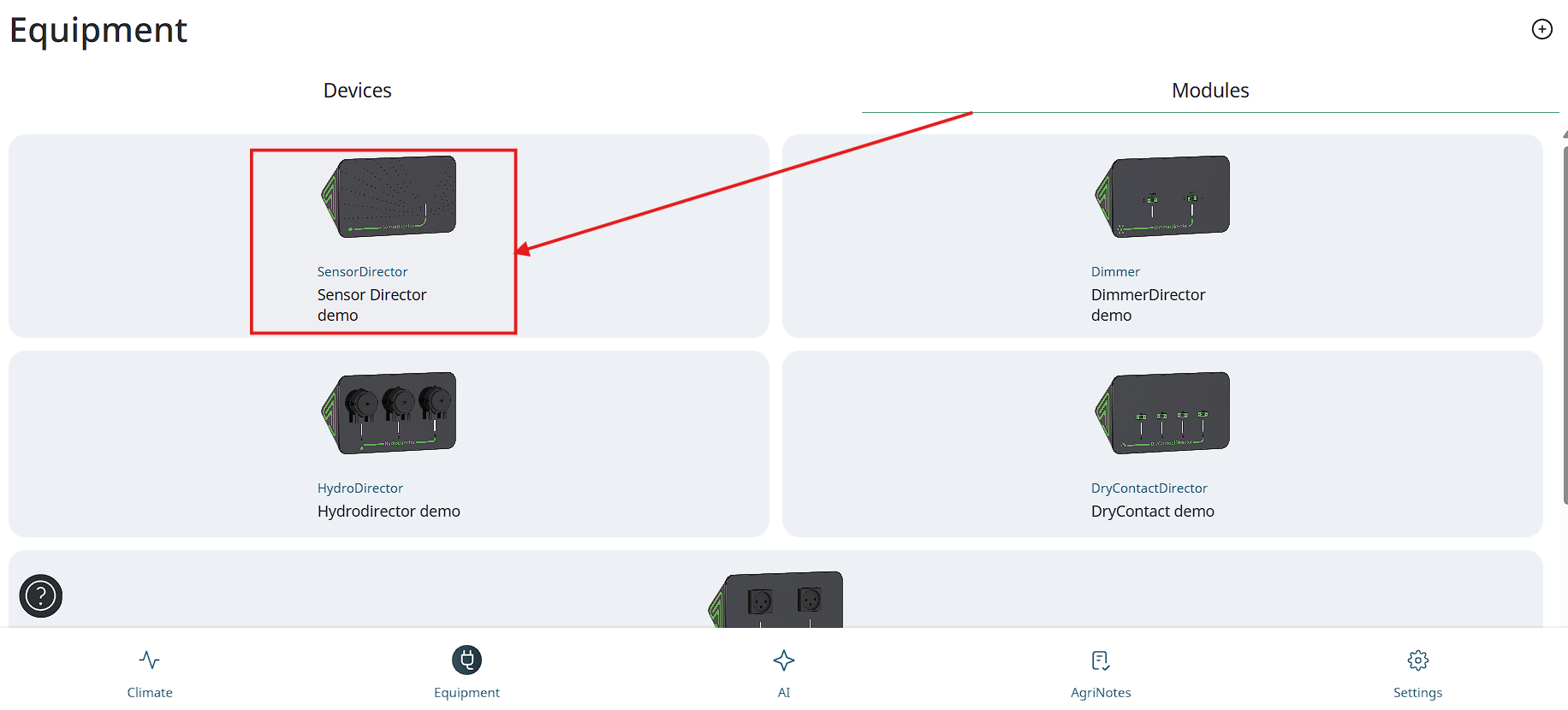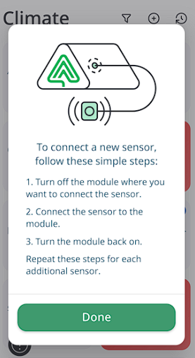 In the App, tap on the Equipment tab, and then on the “Connect module” button (icon) in the “Modules” section.