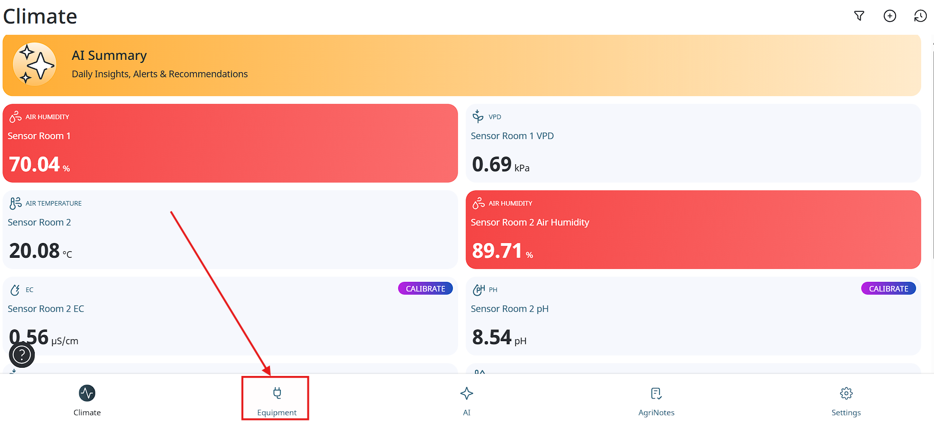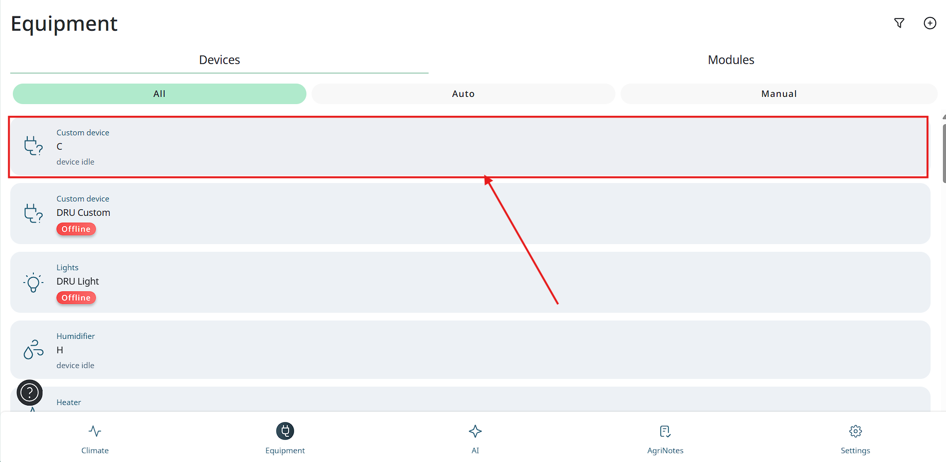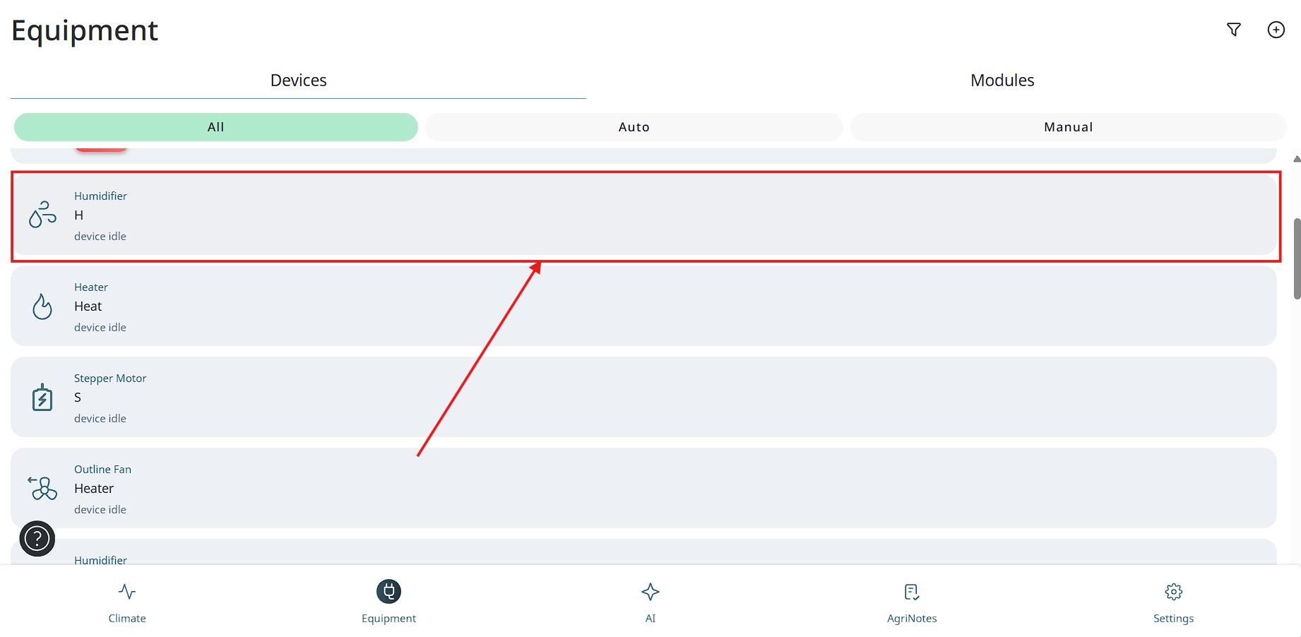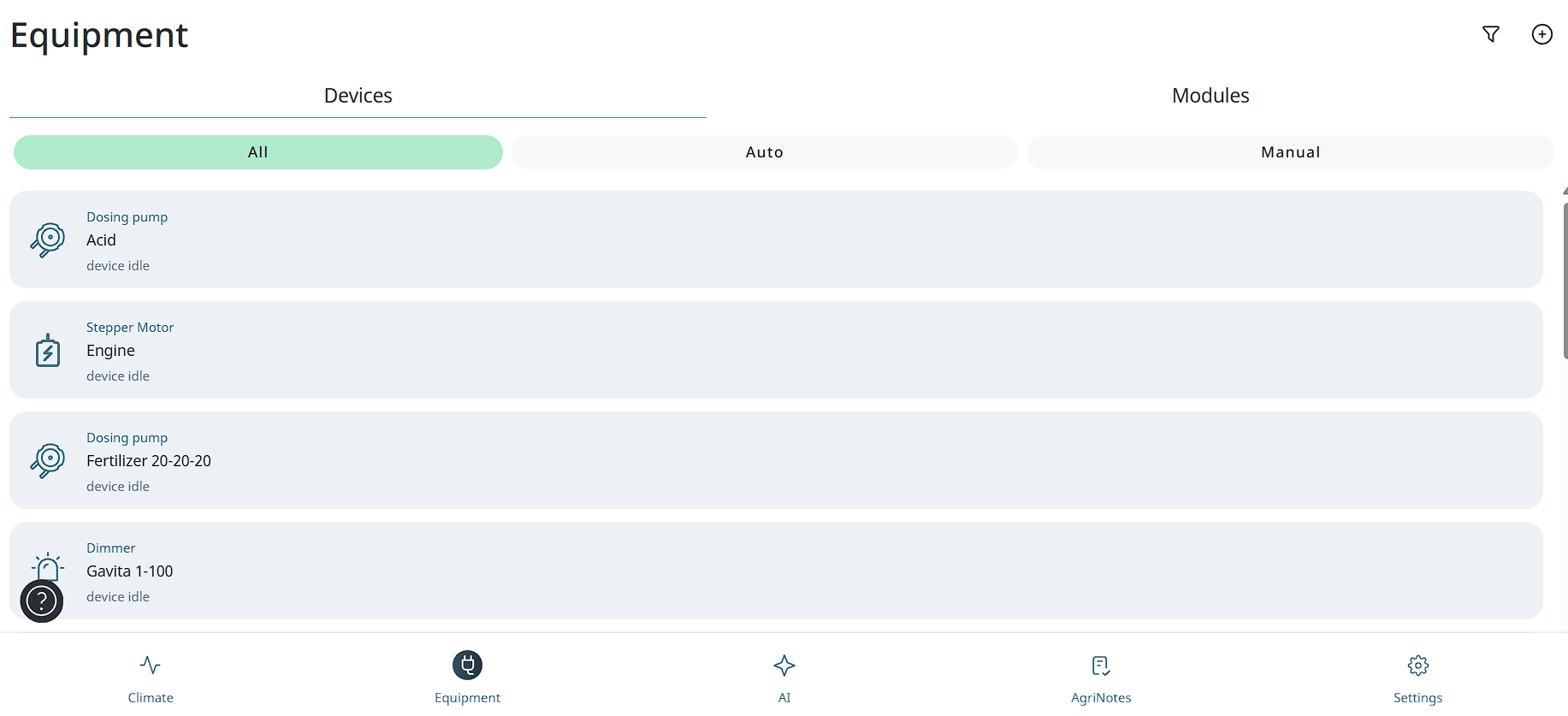 In the App, tap on the Equipment tab, and then on the “Connect module” button (icon) in the “Modules” section.