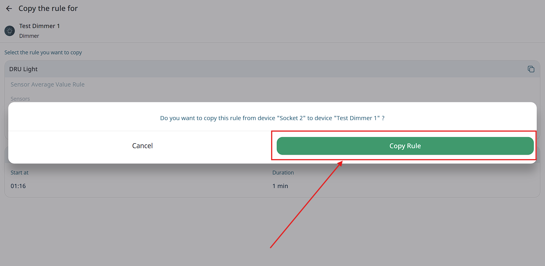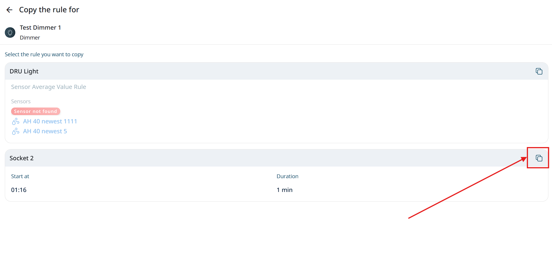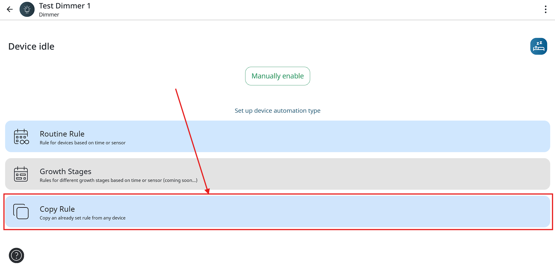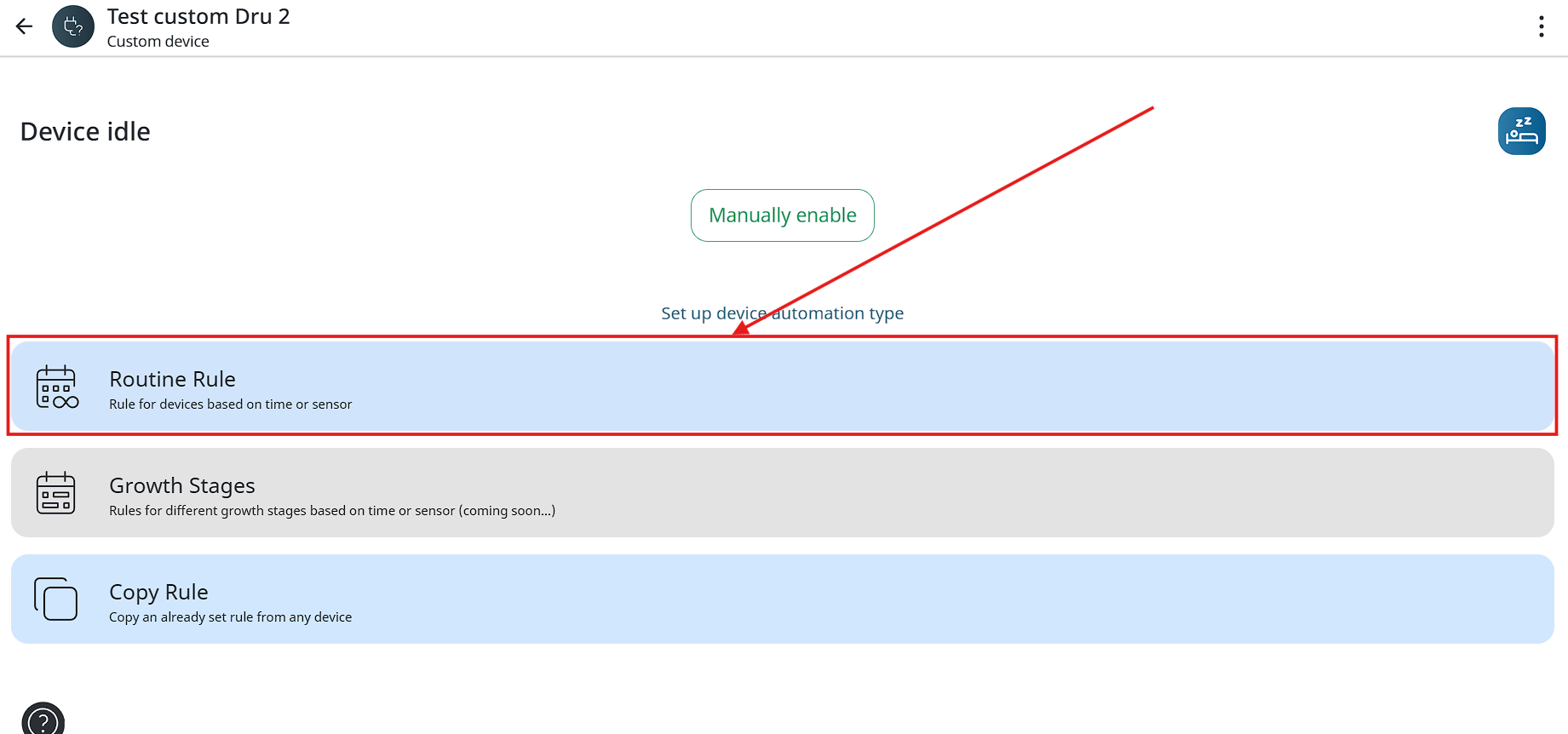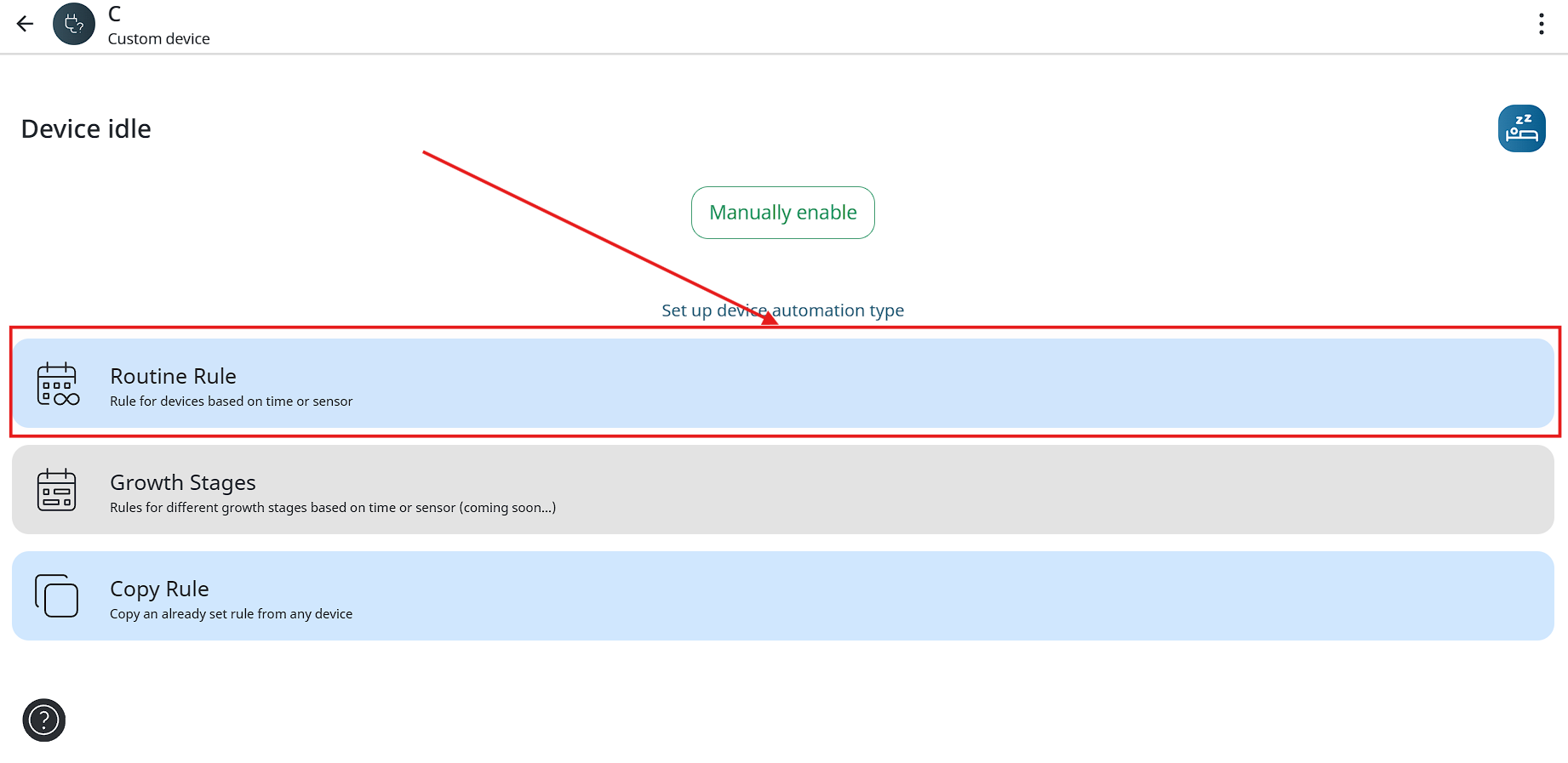 After tapping on device on the modules page user needs to press “Routine rule” button.