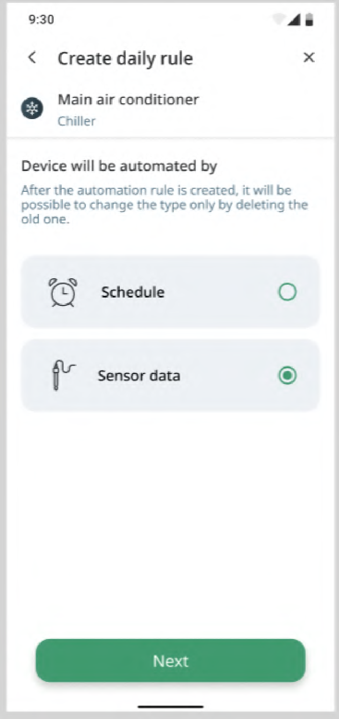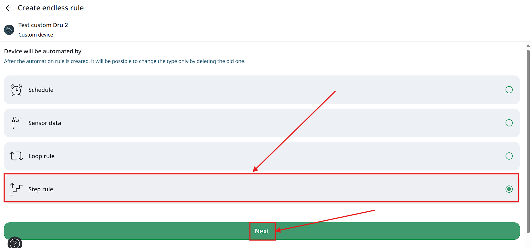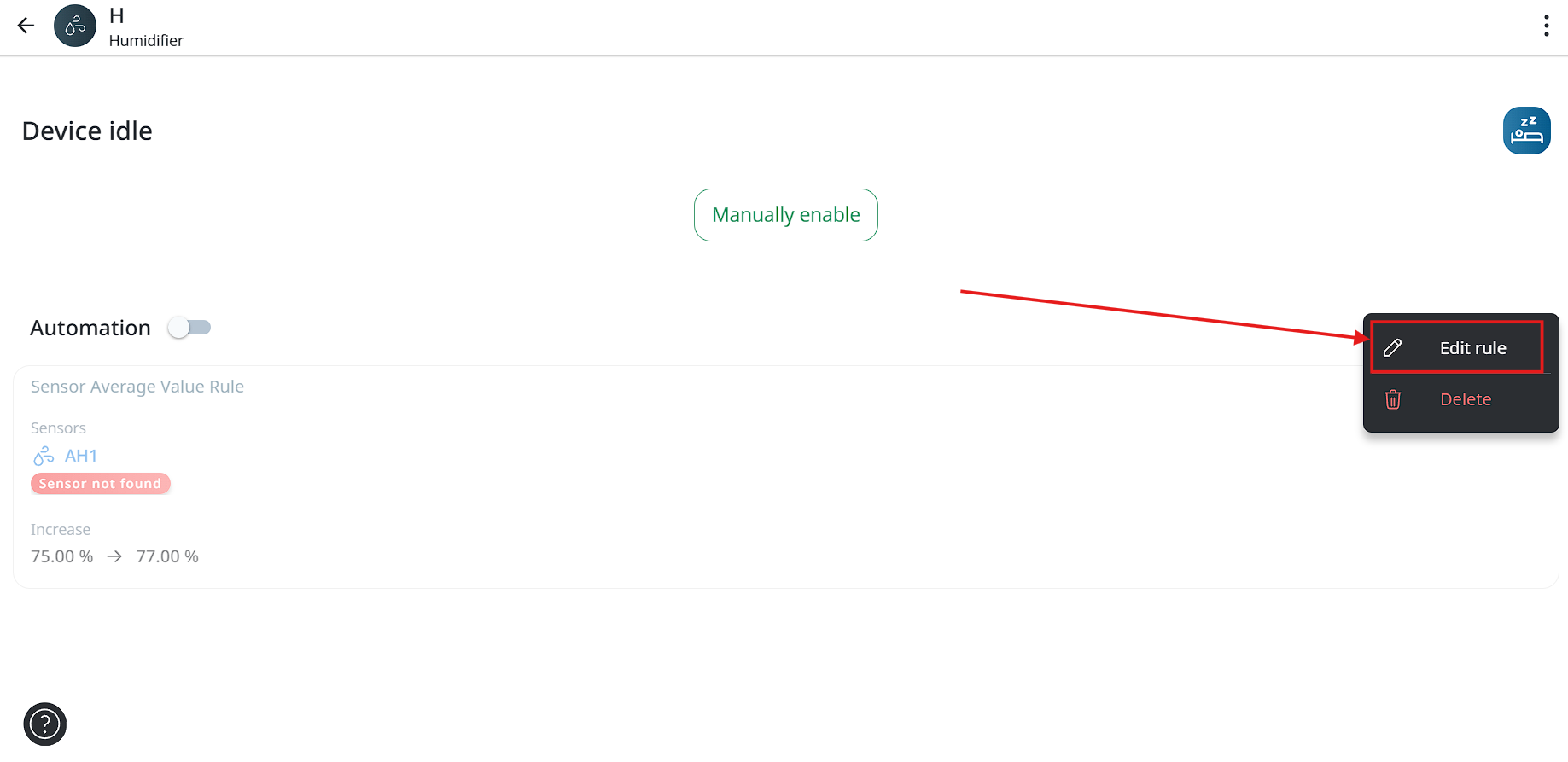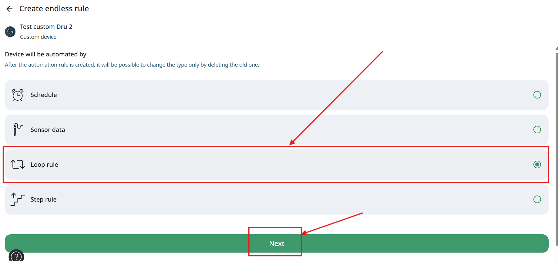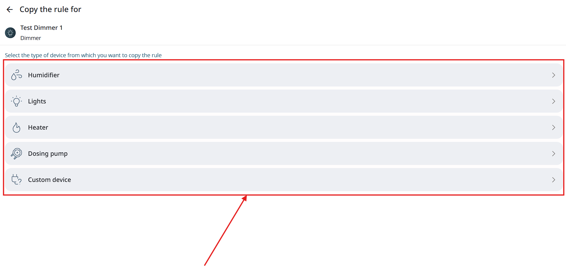 After tapping on device on the modules page user needs to press “Routine rule” button.