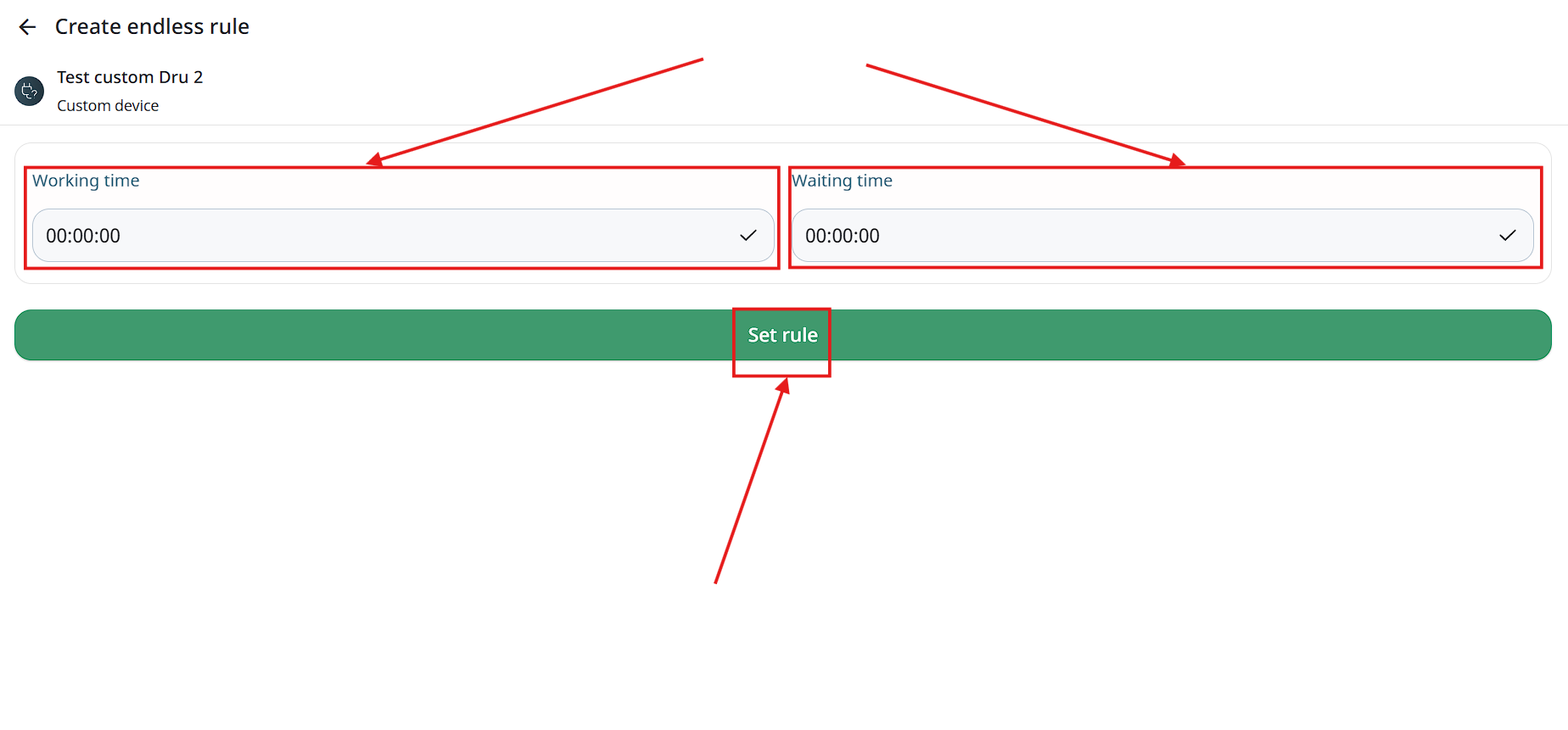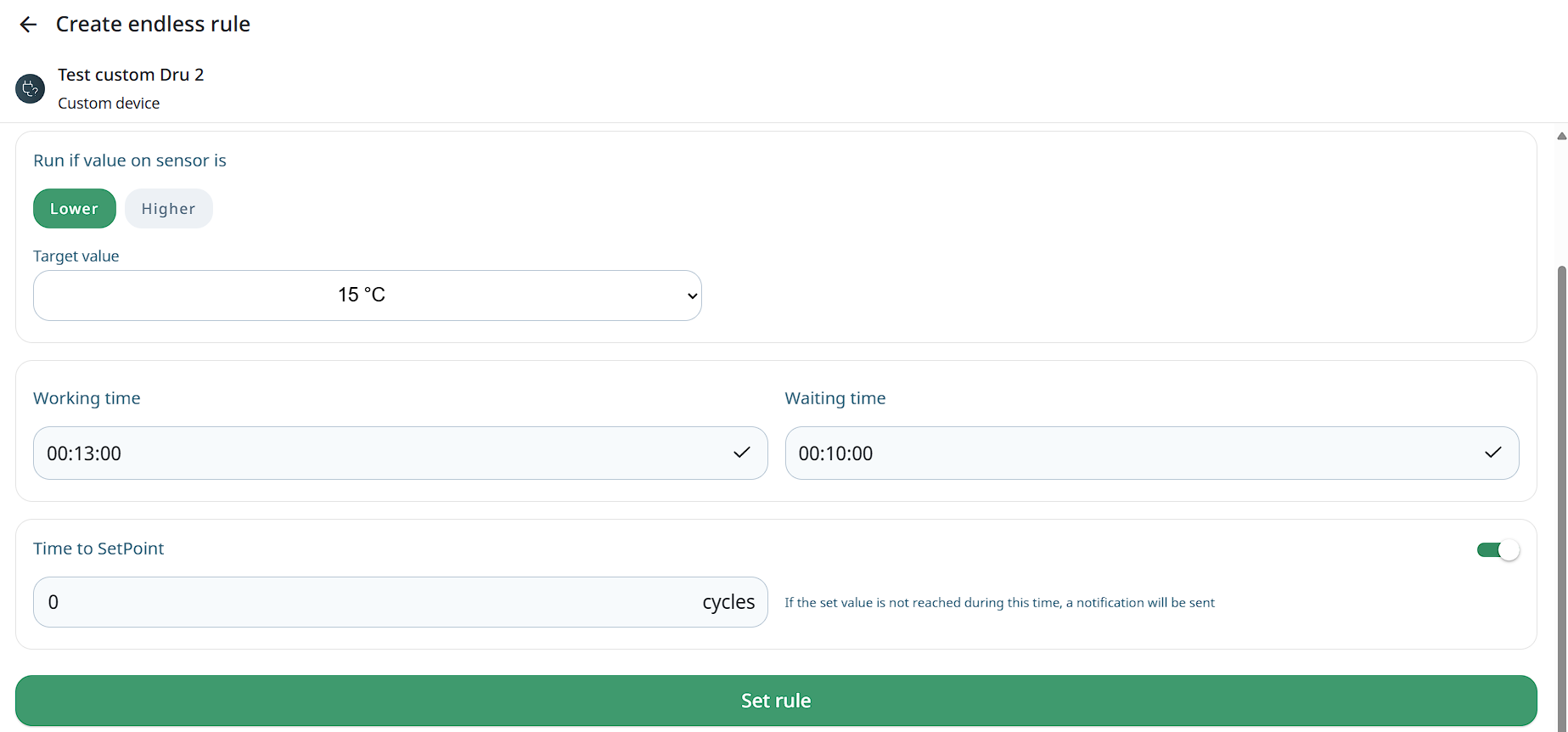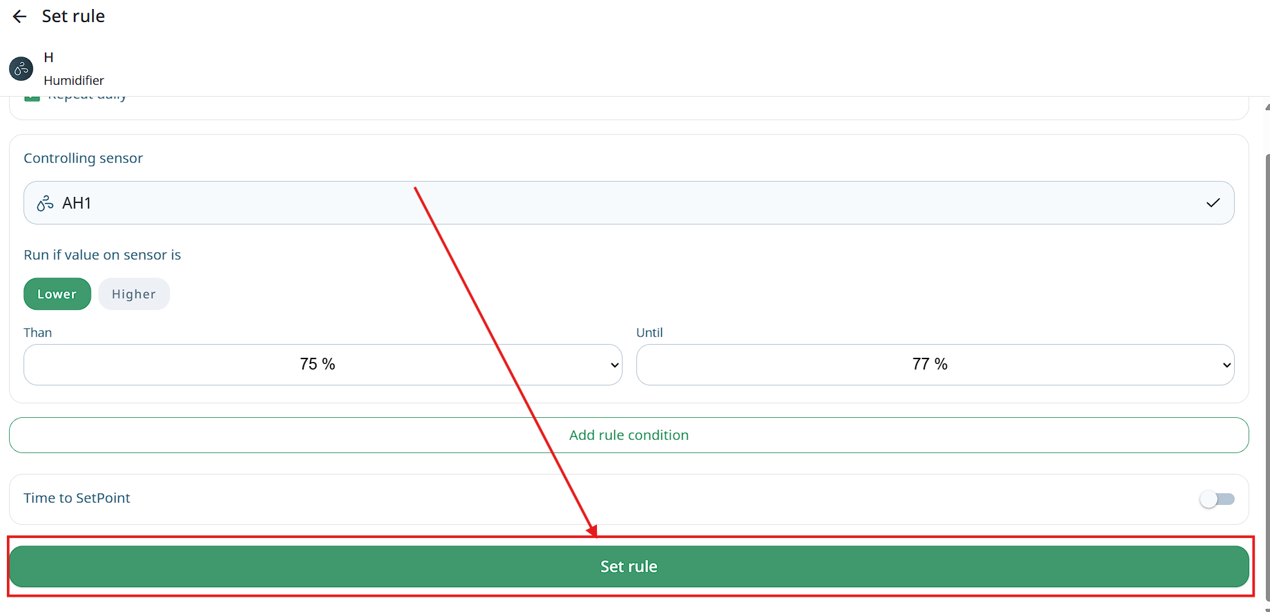 Next for rule creation press “Set rule” button, then user will see his rule on the screen.