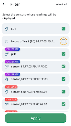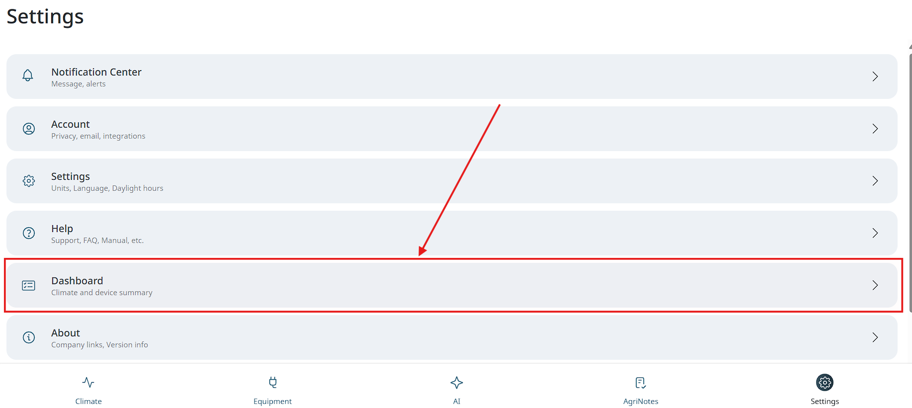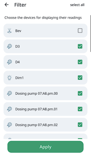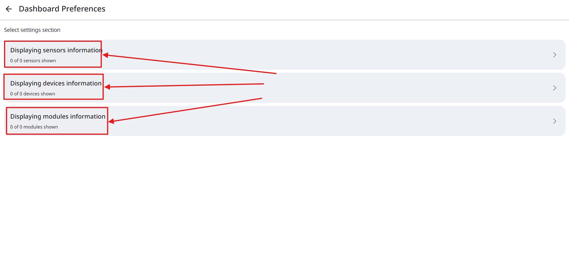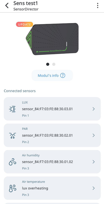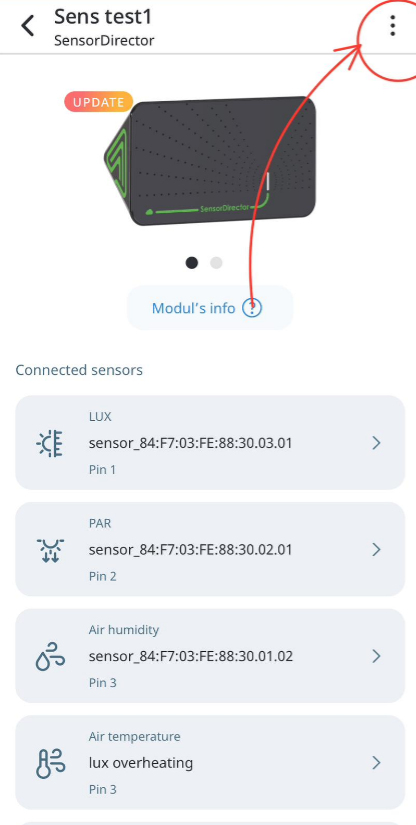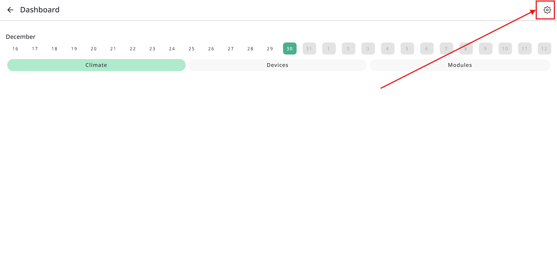 - Also you can edit sensor modules and devices which will be shown on the dashboard. You will need to tap on the settings button in the top right corner.