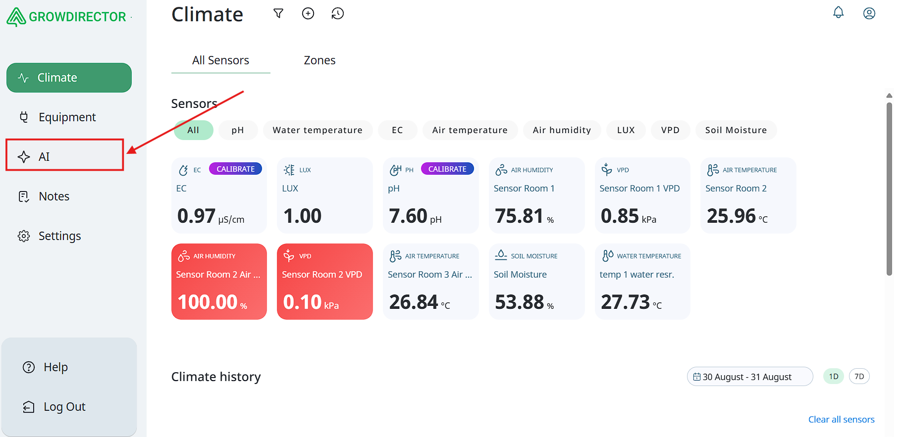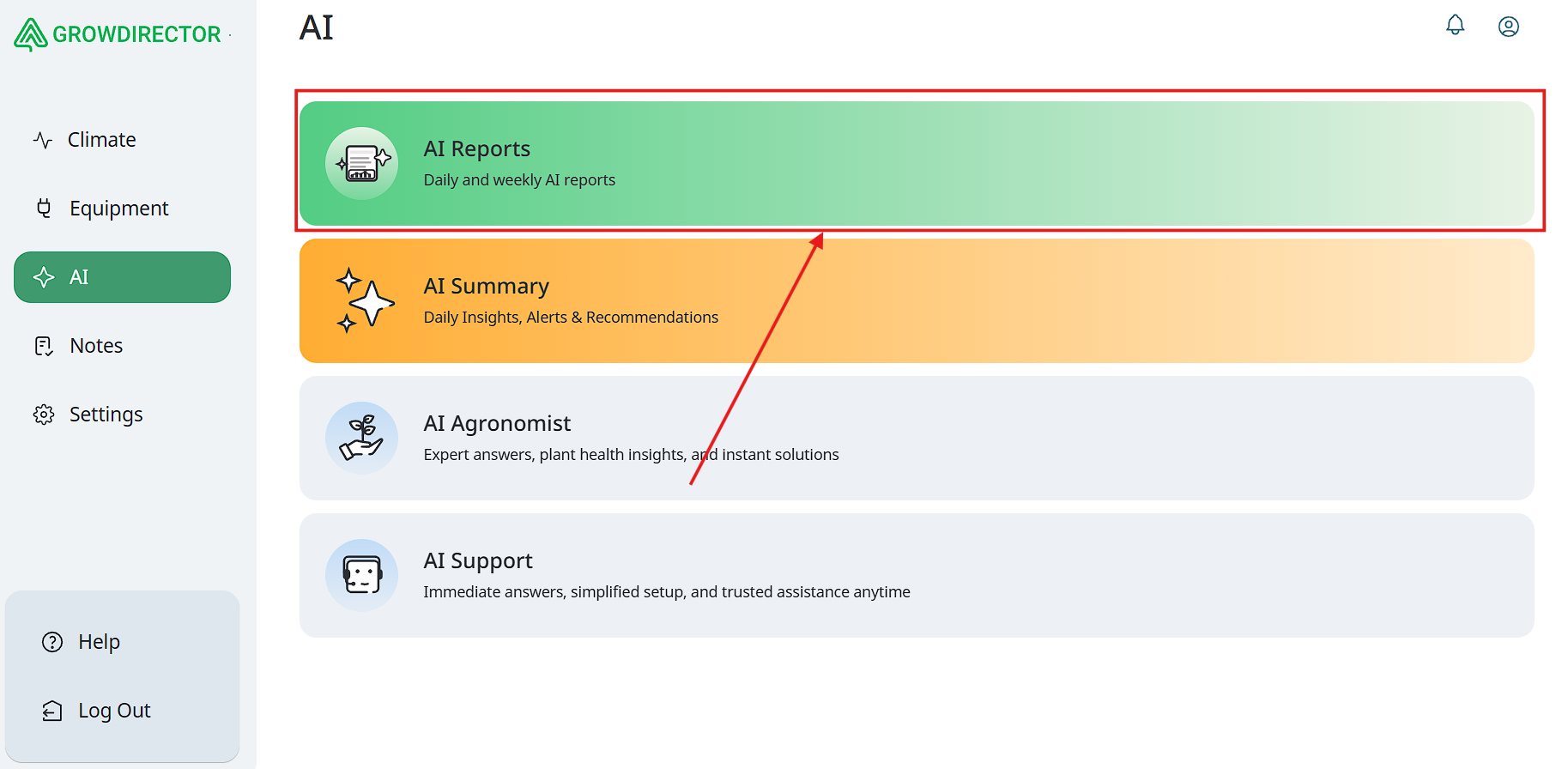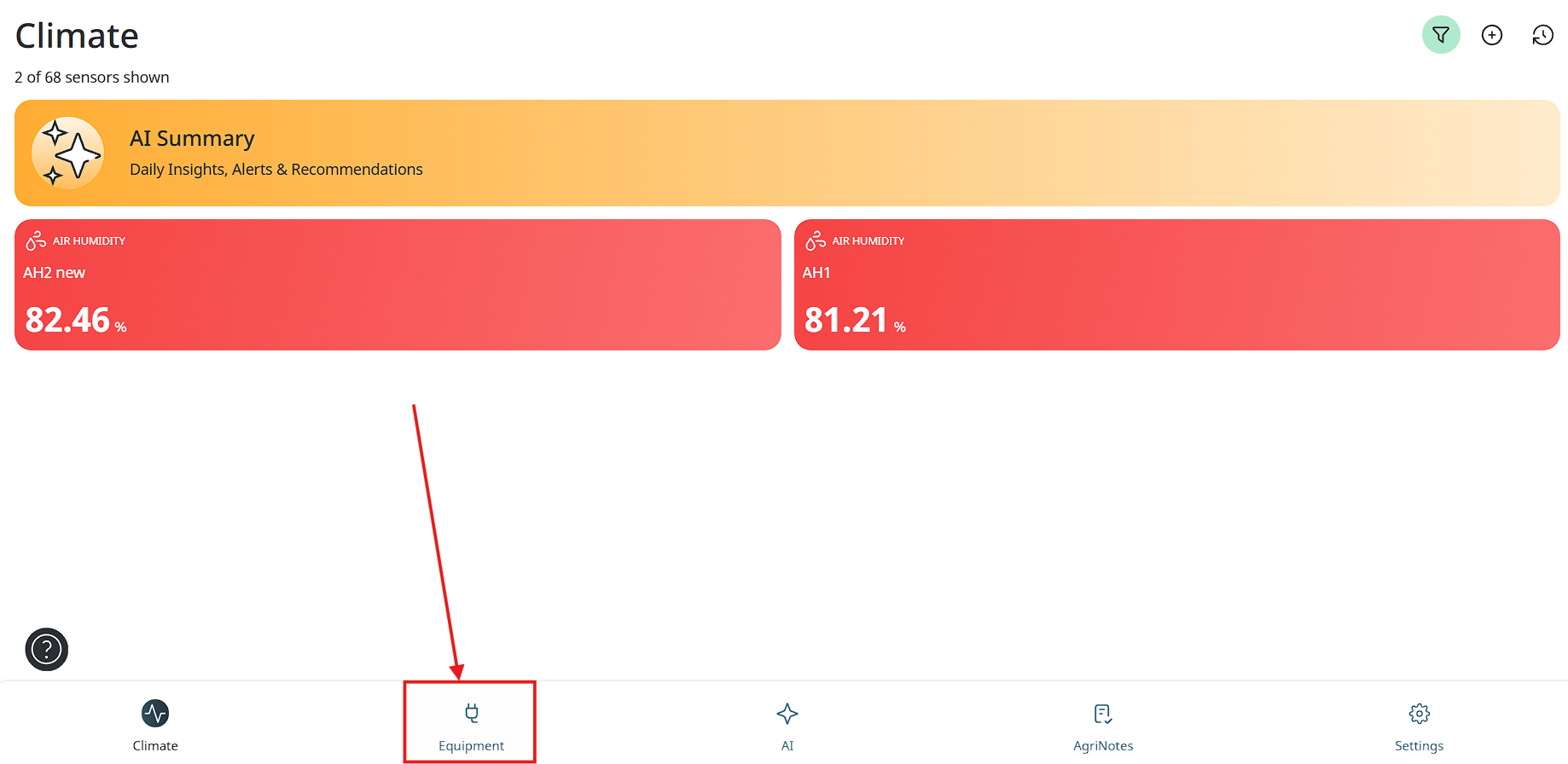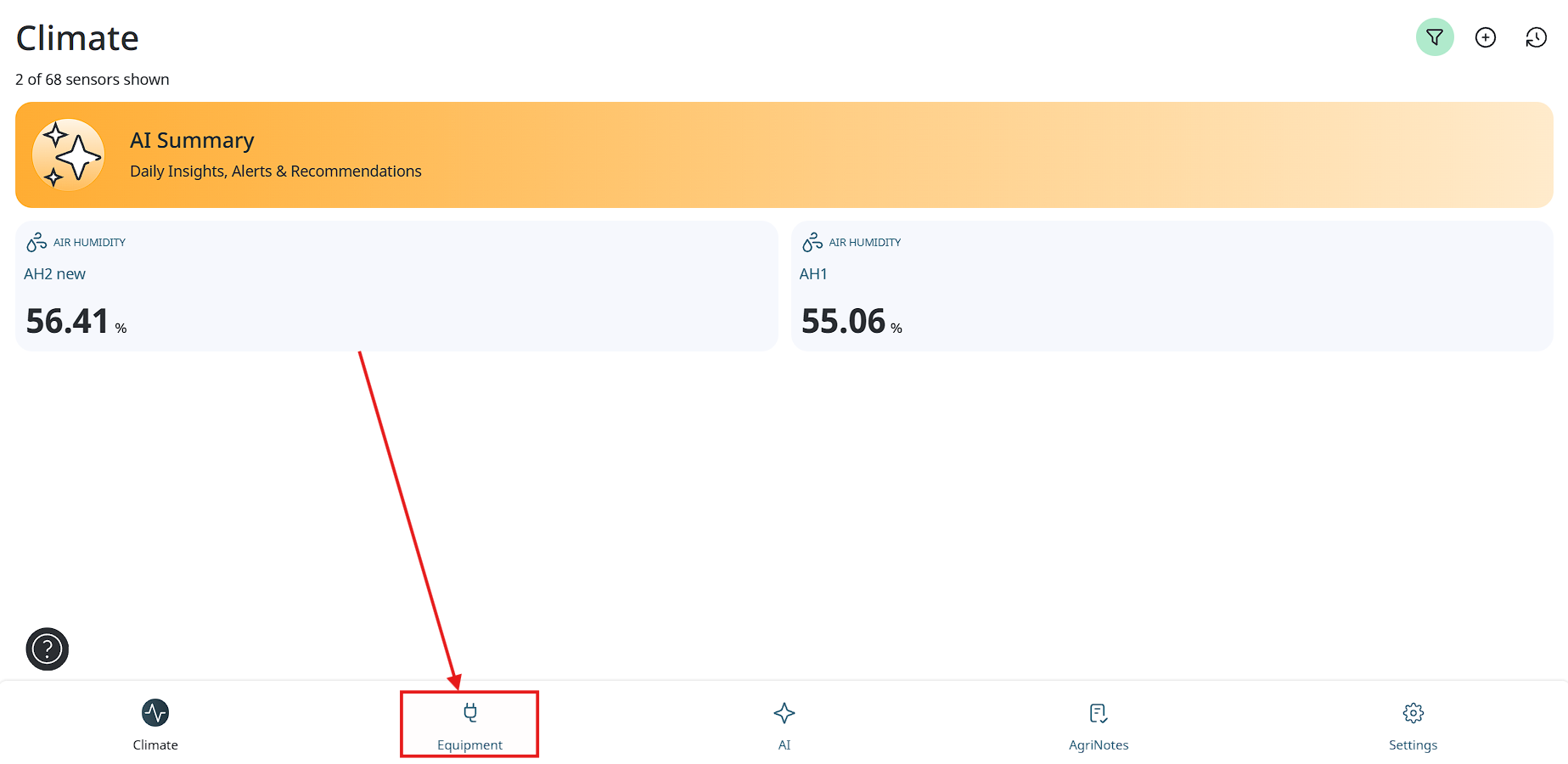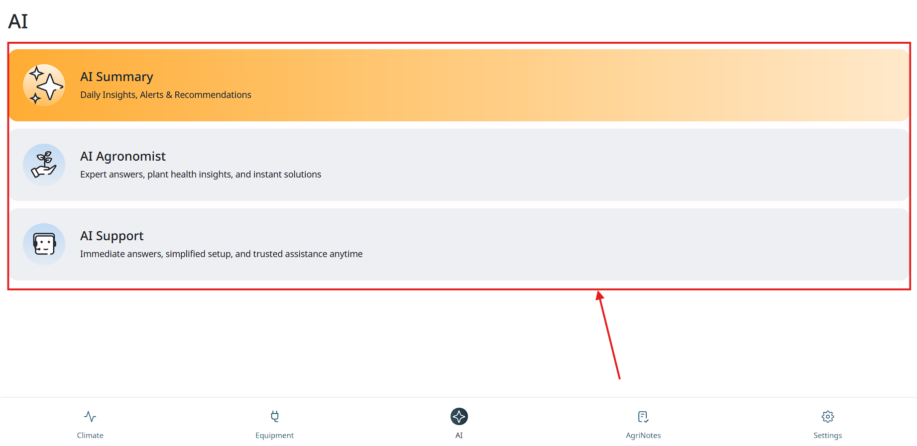 - To enter AI Agronomist user needs to tap on the “AI” button in the bottom menu on the main screen.