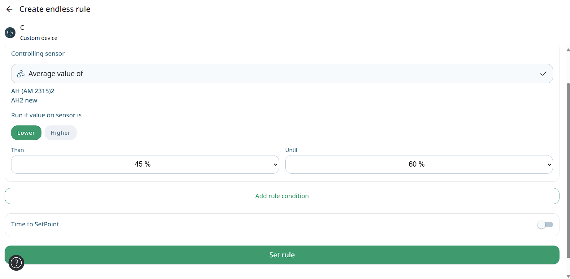 This rules works based on PAR/LUX sensors values, dimmer will be maintain brightness level, which user will set in rule settings.