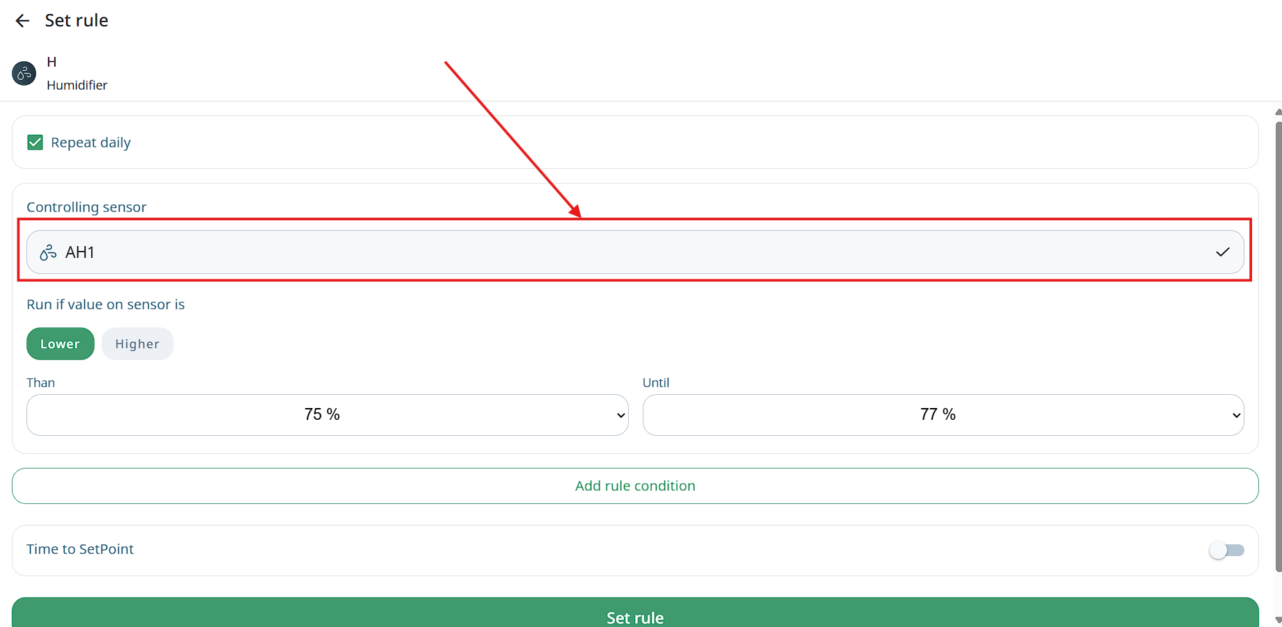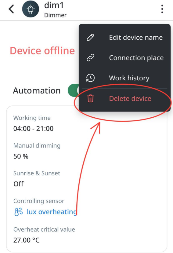 The overheat function is aimed at tracking the temperature parameters by the temperature sensor so that when the LEDs work, the temperature around the plants does not exceed the value that the user sets when setting the rule, this function allows you to prevent dangerous overheating of plants in the greenhouse and, accordingly, their damage.