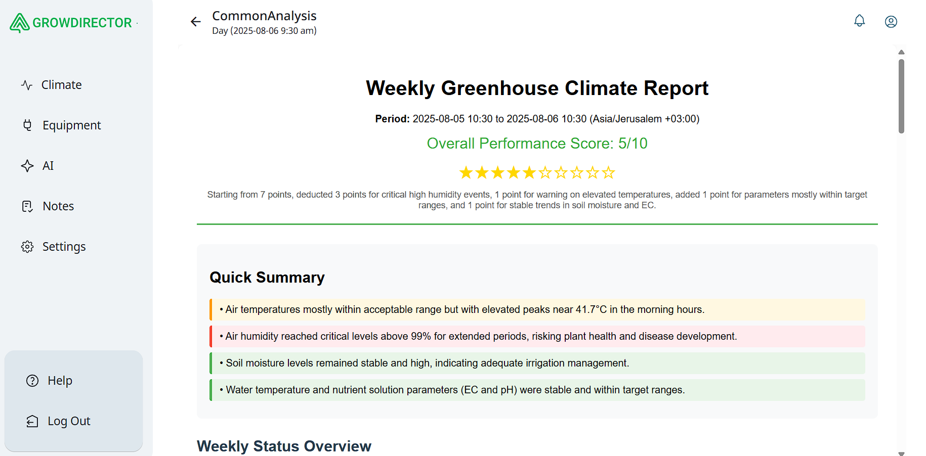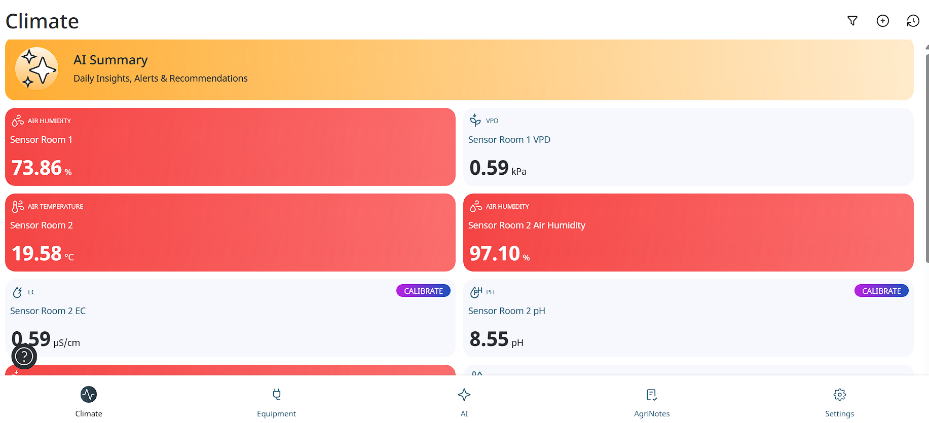 Includes climate control analytics, covering temperature, humidity, and related metrics.