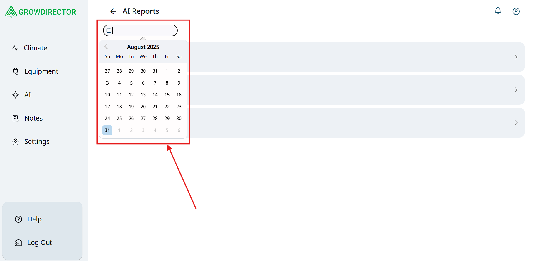 - Set the Time Range. After entering the AI Reports section, specify the desired time period for the report.