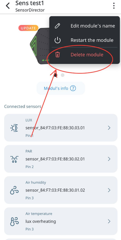 In order to delete a Module, you need to delete Devices and/or Sensors connected to a Module first. If there are Rules associated with Devices, you need to delete the Rules as well. This is made in order not to delete a Module occasionally. To delete a Module, please, follow these steps: