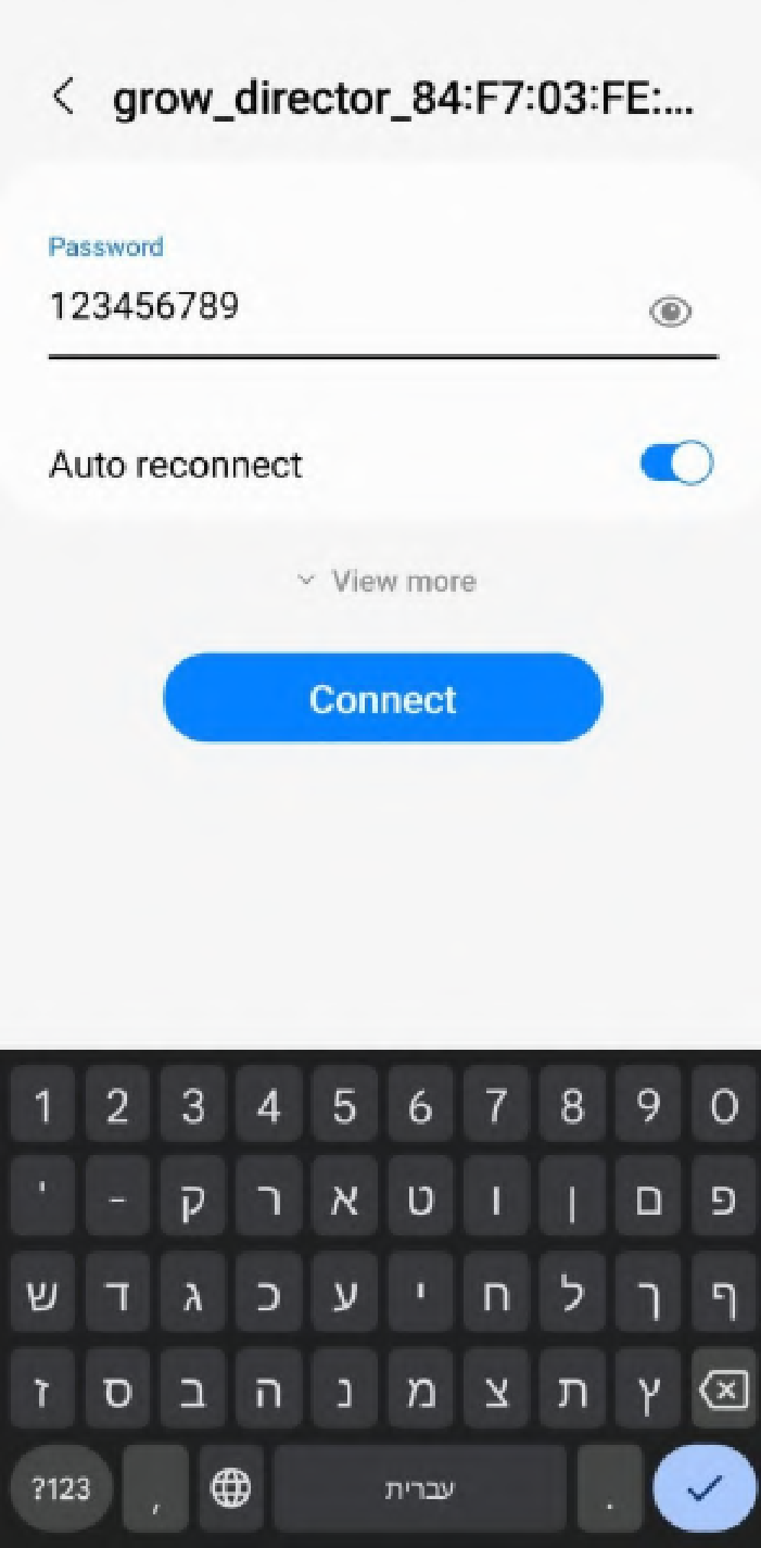 10. Only if it’s your first connection to this module.: You'll be prompted to enter a password for your module. Use the default password (123456789) for the first-time setup and tap 'Connect'.