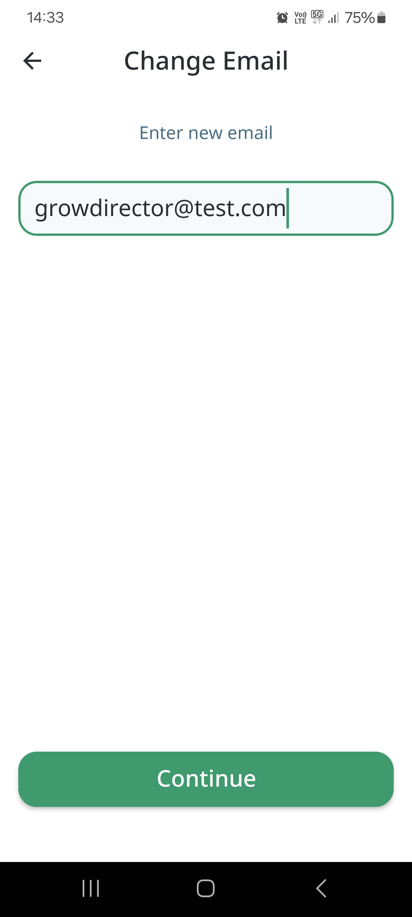 - Tap the Email option. Then you will need to enter new email and press “continue”. The following screen appears: