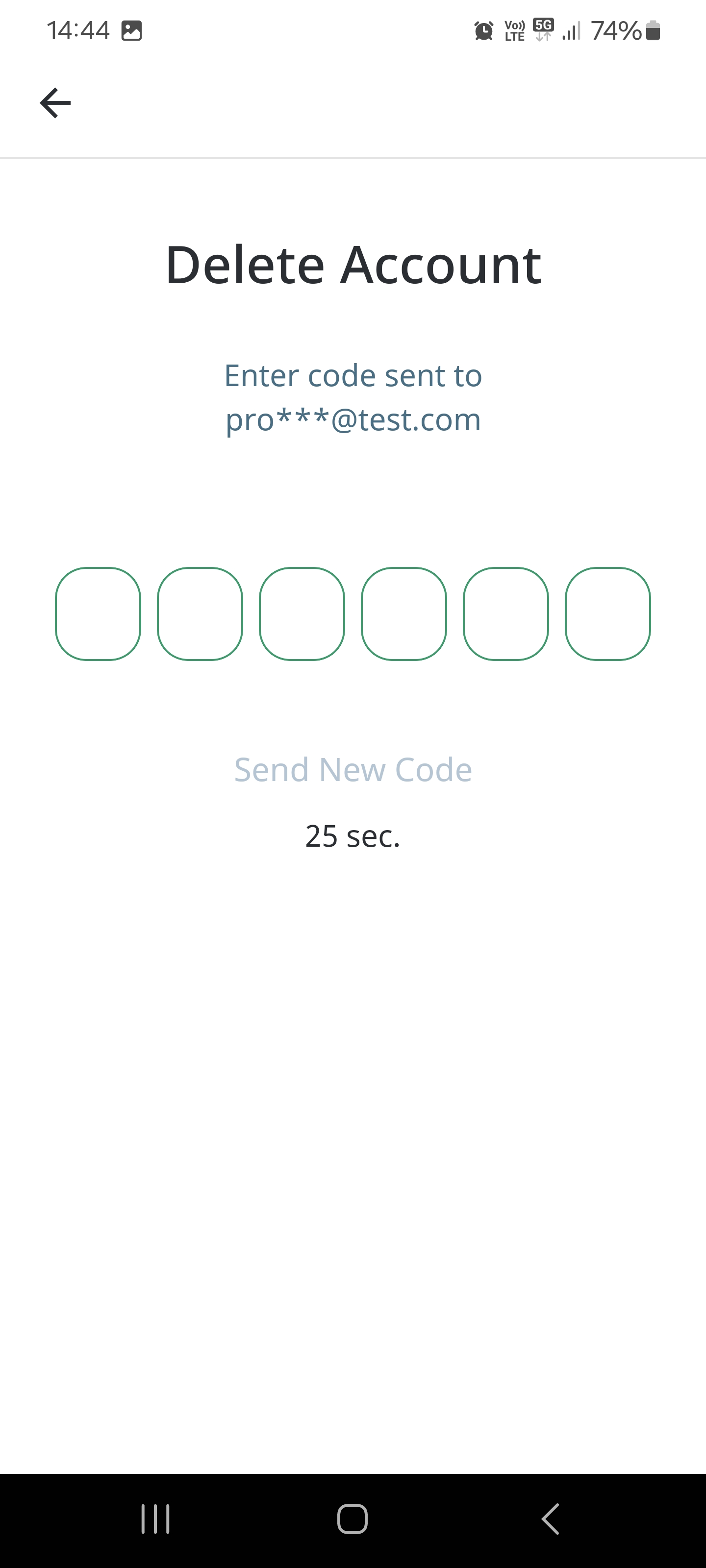 This section is used for permanent removing a client's account and deleting all his\her information. This is an irreversible action! Once the client clicks on the “Delete Account” button, an automated pop-up will comes out to take his attention to his action. If the client choose to proceed the procedure and click the green “Continue” button, he\her will be transferred to a new window. A code will be sent to clients email address to fill in that window. After filling the code, the account will be permanently removed.