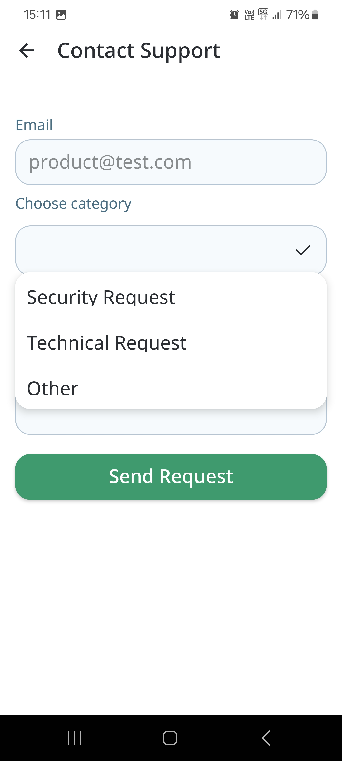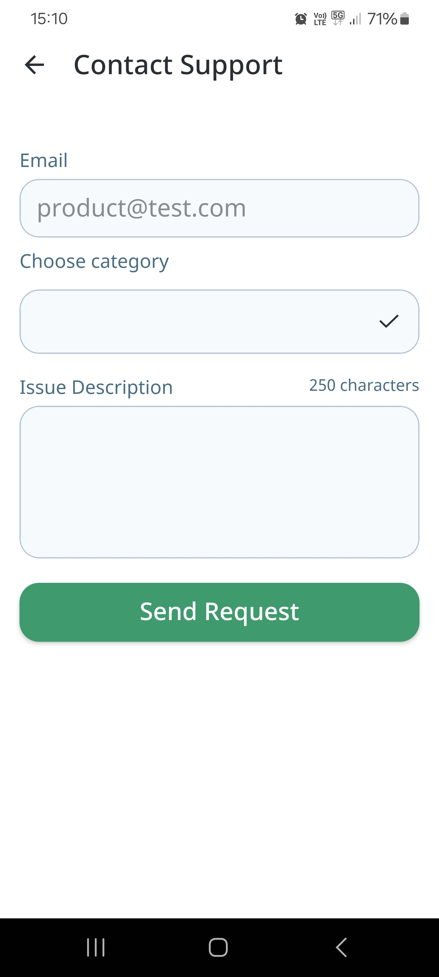 - Tap the Contact Support option on the Settings screen. The following screen appears: