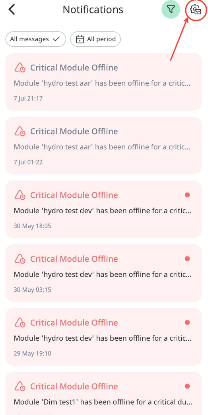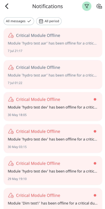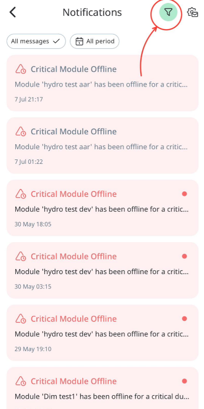 To see Notification Filters tap the Filter button on the top-right corner of the screen, then you can choose needed filter. The following screen appears: